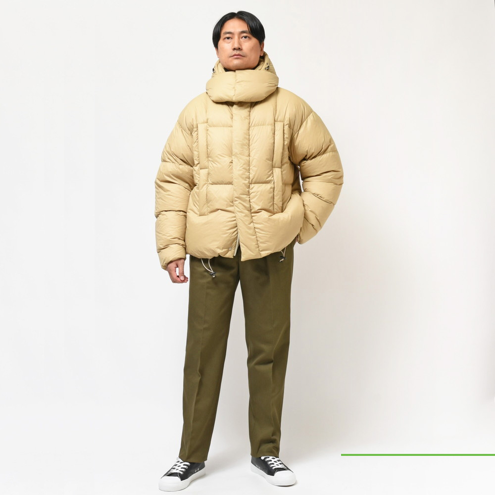 たっぷりとした丸みのあるシルエットではあるんですが、実際に着てみると着ぶくれ感はなく、しっかりと着こなしているように見せてくれるんです。これは独自のステッチの入れ方やダウンのボリュームのコントロールが緻密に行われているからでして、Bacon(ベーコン)の独自性にも繋がっています。