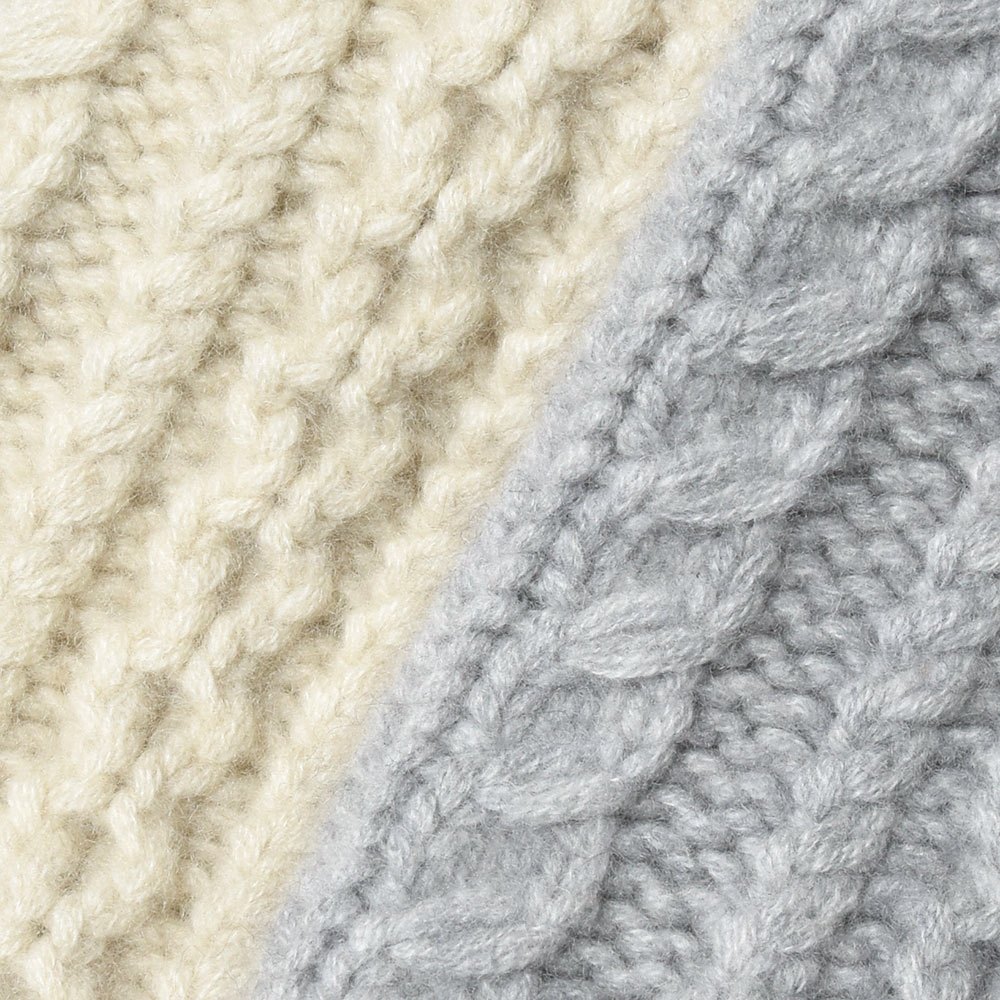 初めは少し固く感じられるかもしれません。もちろんカシミアなのでふわりとしていてエアリーなんですが、8プライということと、しっかり編み上げているのでコシを感じるように思います。