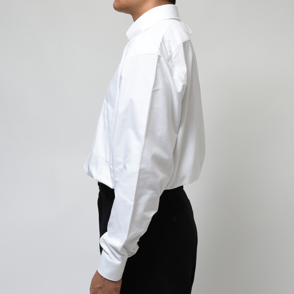 rdv o globe(ランデヴー オー グローブ)ではインラインで提案しているシャツ以外にもGUY ROVER(ギ・ローバー)とのコラボレーションをしているタイプがあるんです。弊社では馴染み深いオールマシンメイドをシャツを提案するGUY ROVER(ギ・ローバー)が作り出す一着は端正な雰囲気がありつつも、シルエットやパターンはrdv o globe(ランデヴー オー グローブ)らしいサイズバランスやディティールを採用。