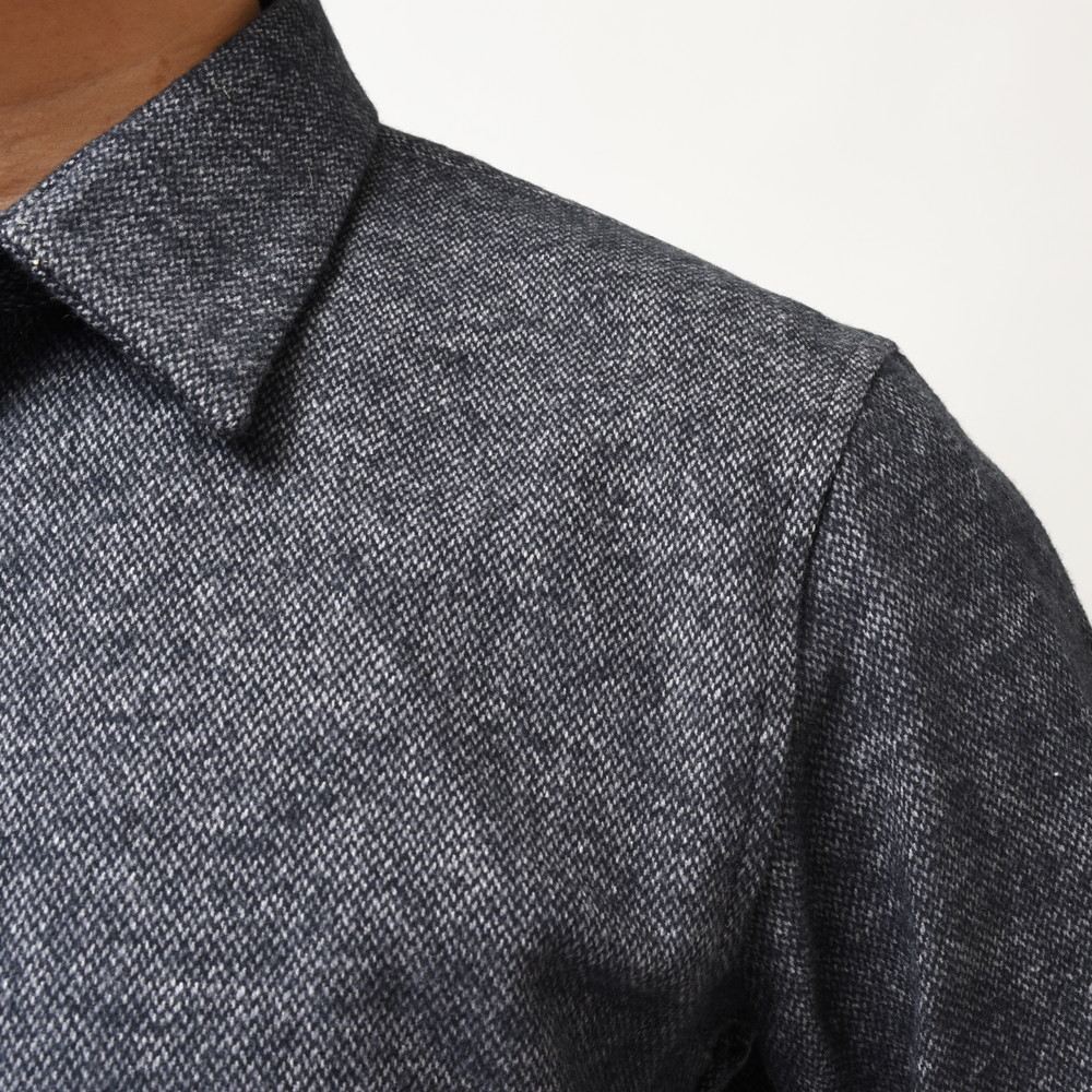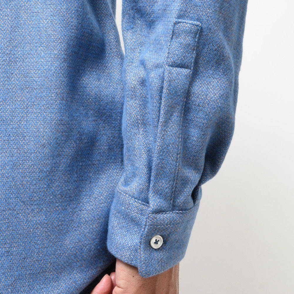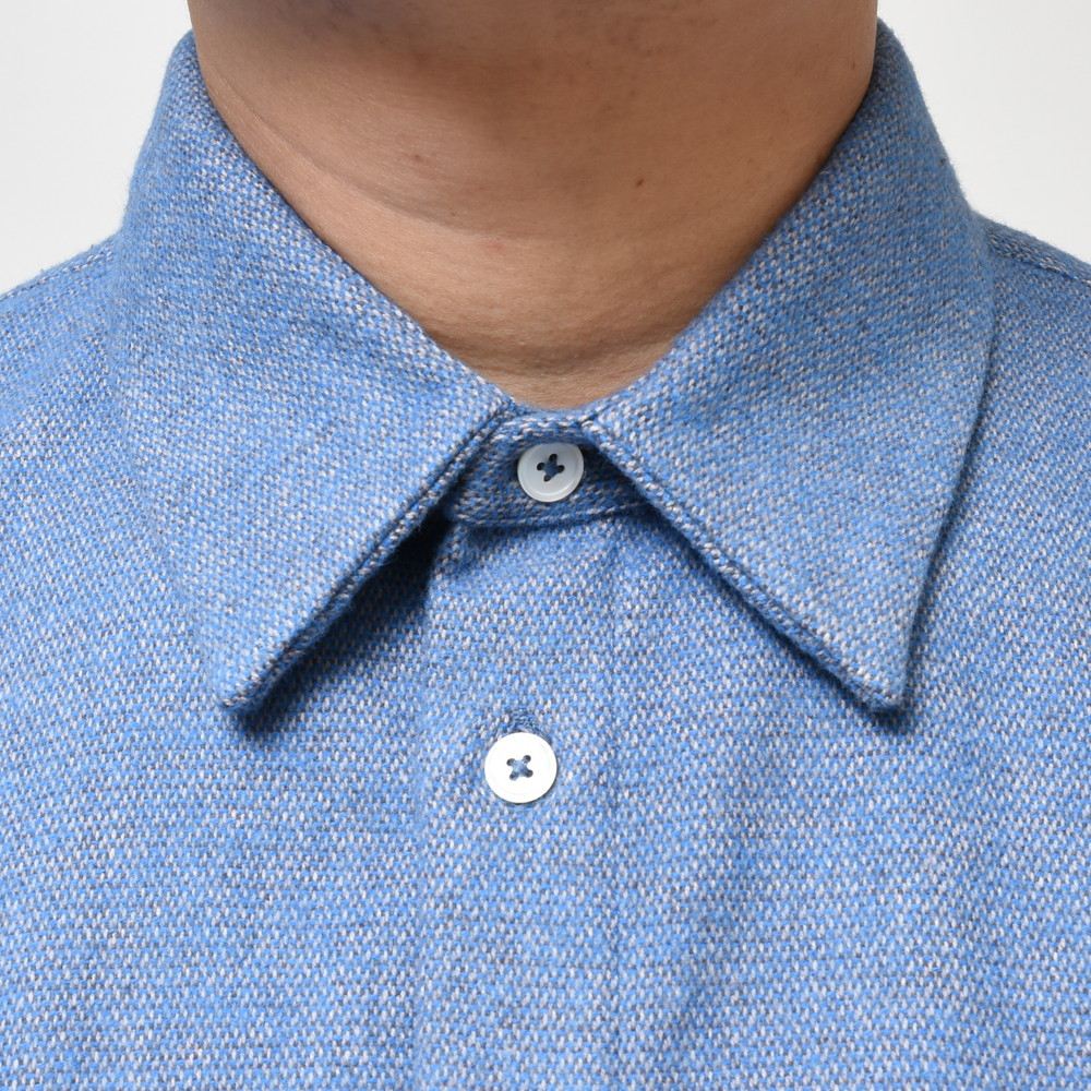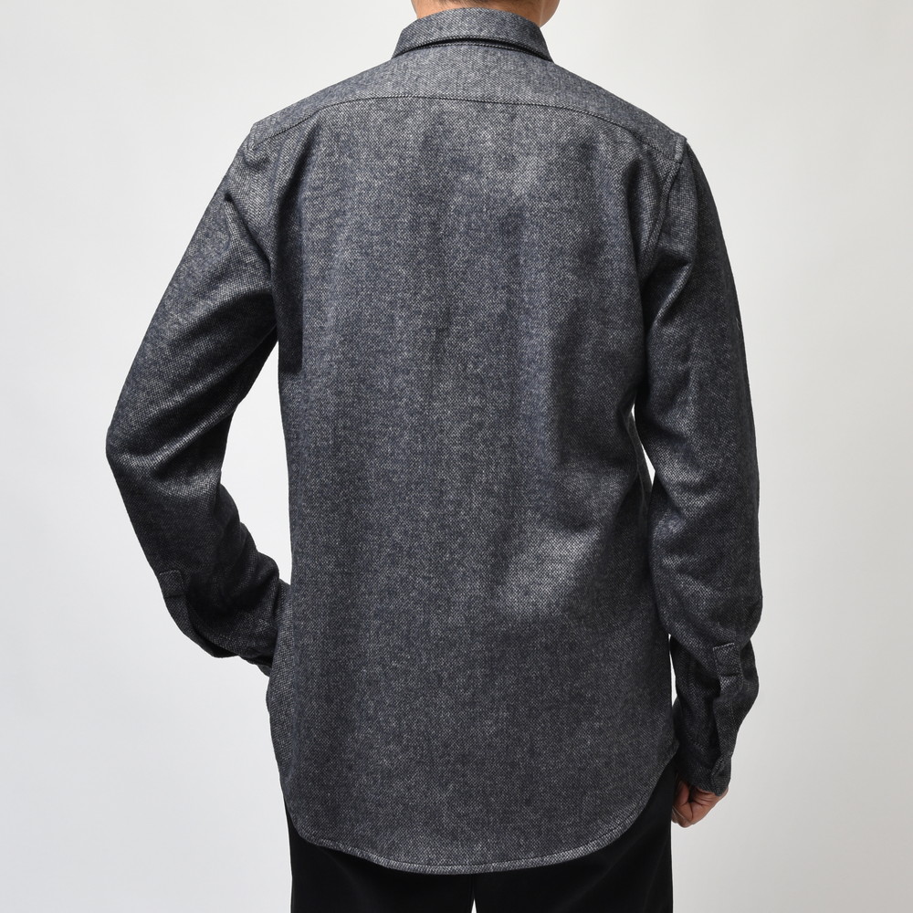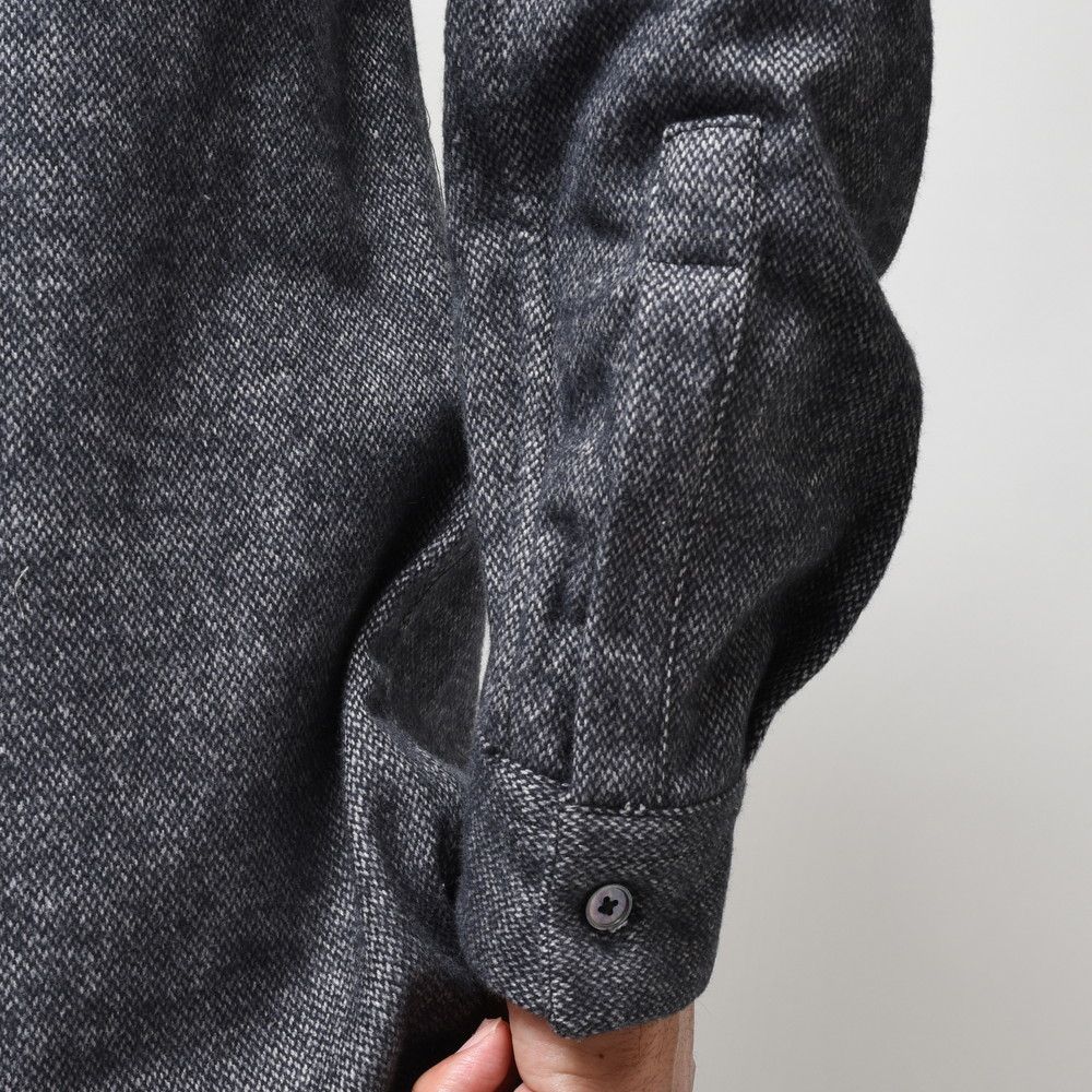 生地はやや地厚なツィードタッチのネルファブリック。一応“シャツ”というカテゴリーではありますが、シャツアウターに近い感じで着て頂けるので、幅広いスタイリングで使って頂けるモデルだと思います。