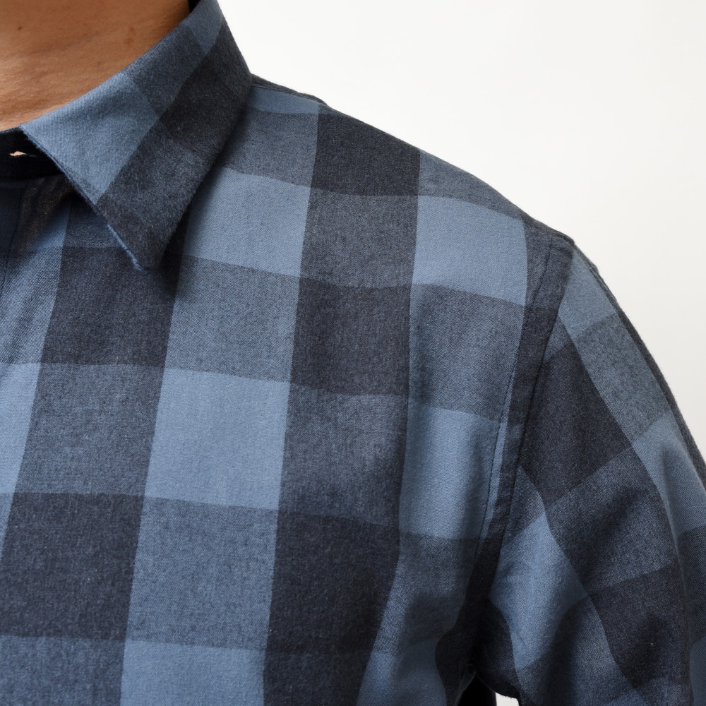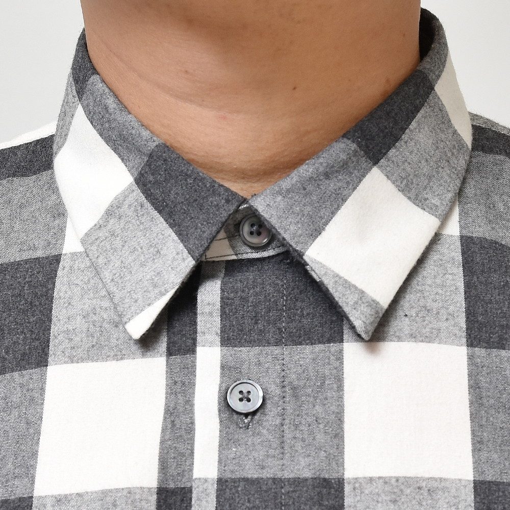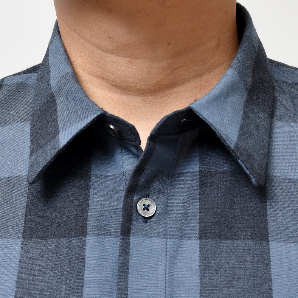 ここまでクリーンな印象のネルシャツは珍しいかもしれません。バッファローチェックではあるんですが配色が落ち着いているので普段のスタイルに差し込みやすいのが良いですね。