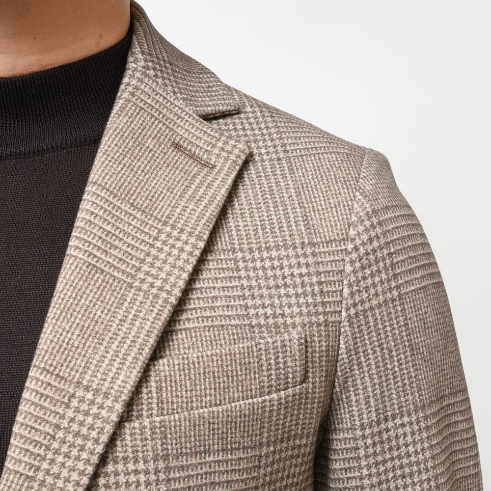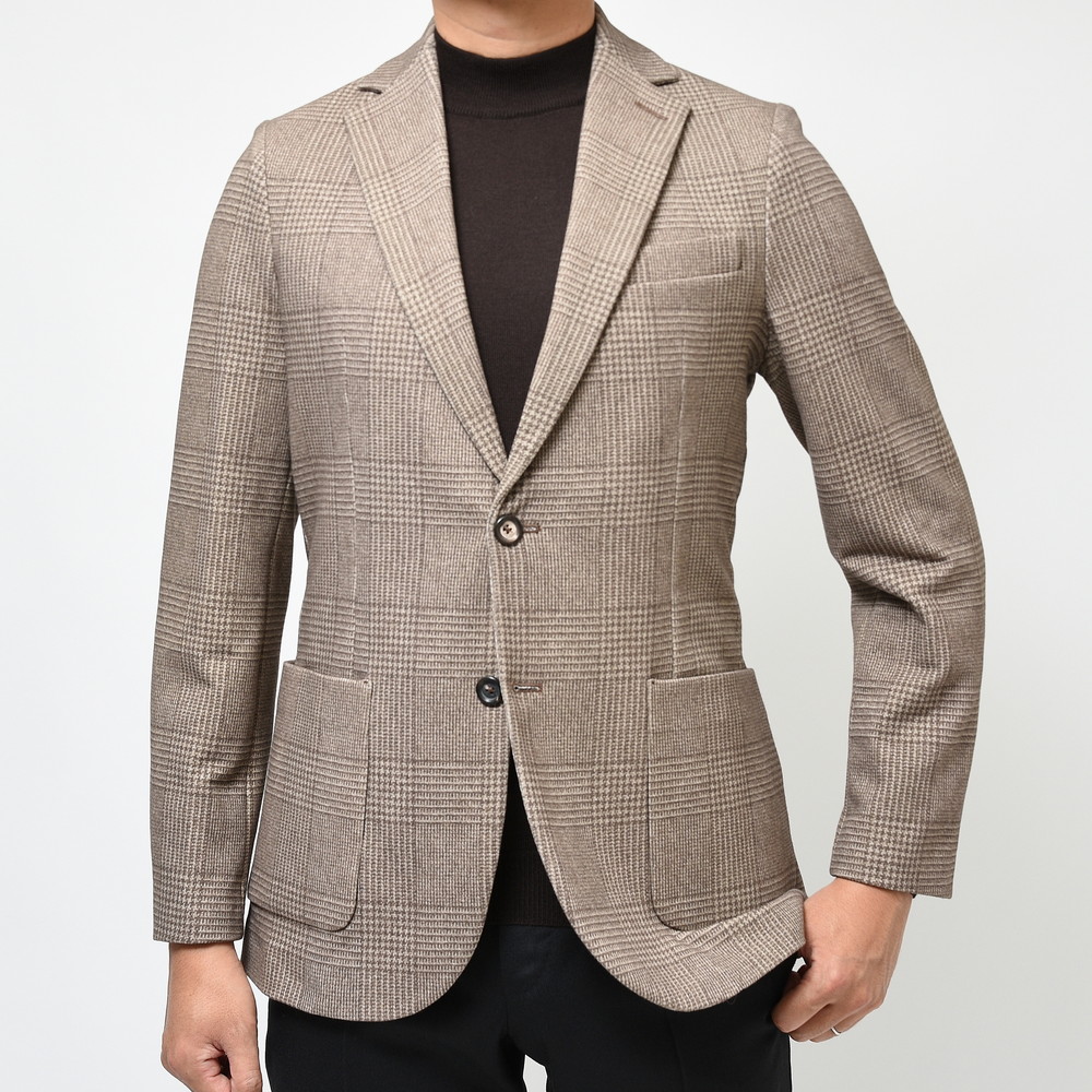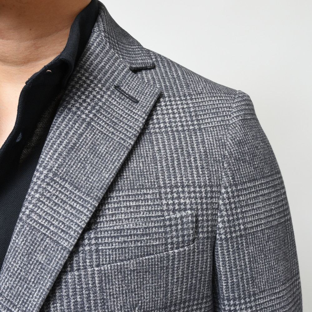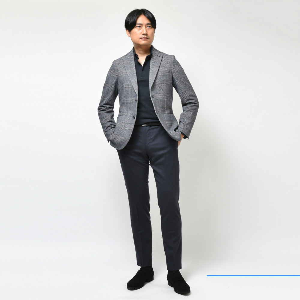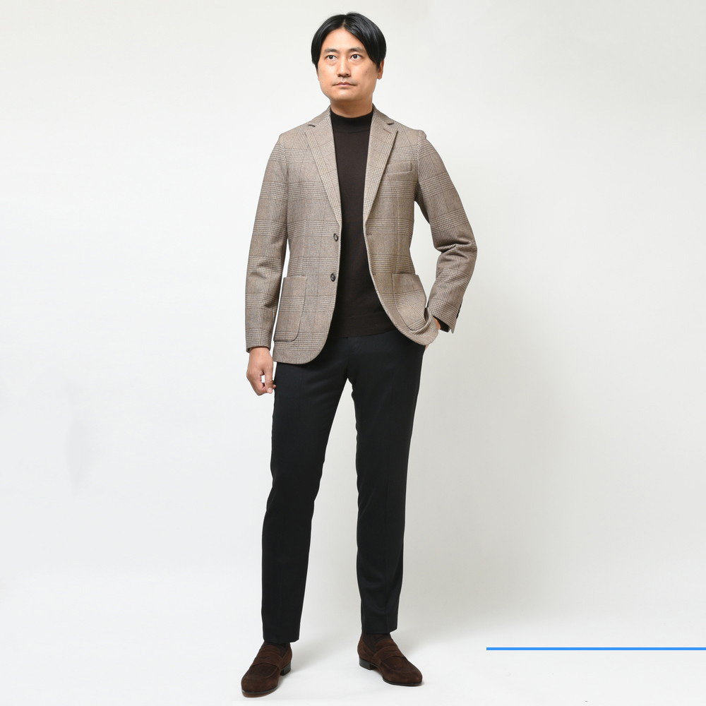 ウォーム感のある生地に、グレンチェックといったクラシカルな見た目ですが、着るとストレッチ性の高いジャージ素材でいい意味で見た目の期待を裏切ってくれます。