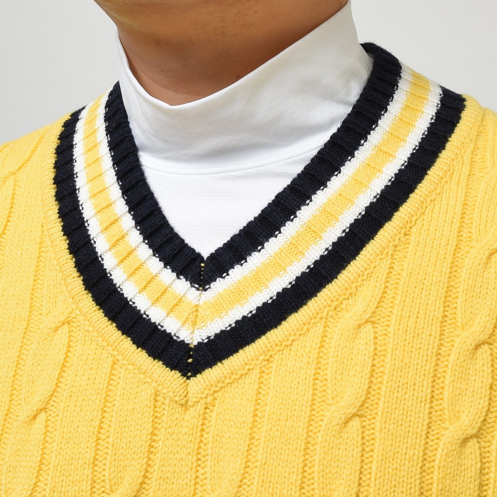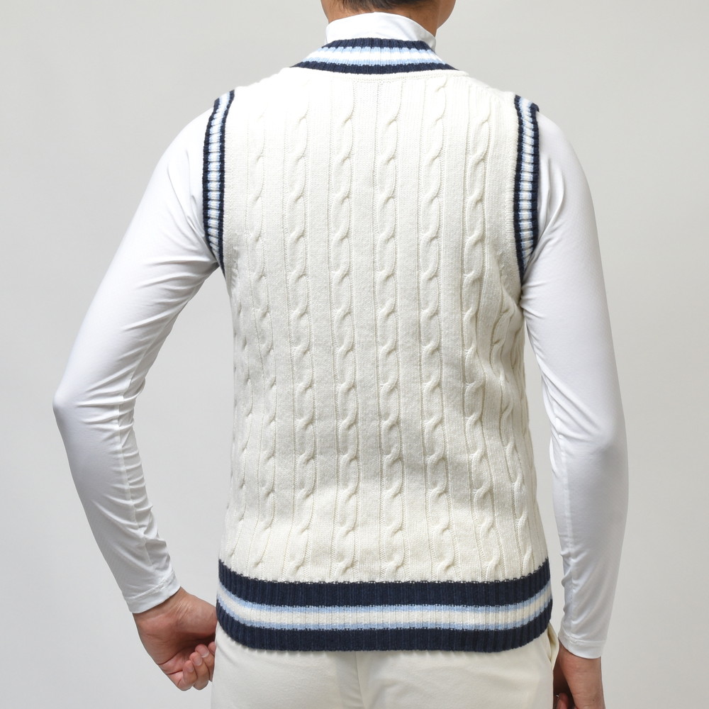 個人的には非常にお気に入りのアイテムで、このニットベストをコーディネートに取り入れるだけで、他のゴルファーの方の一歩先のファッションを楽しめるかと思います。