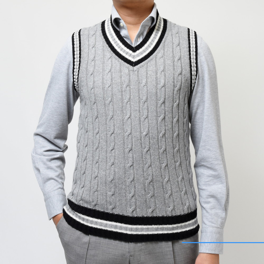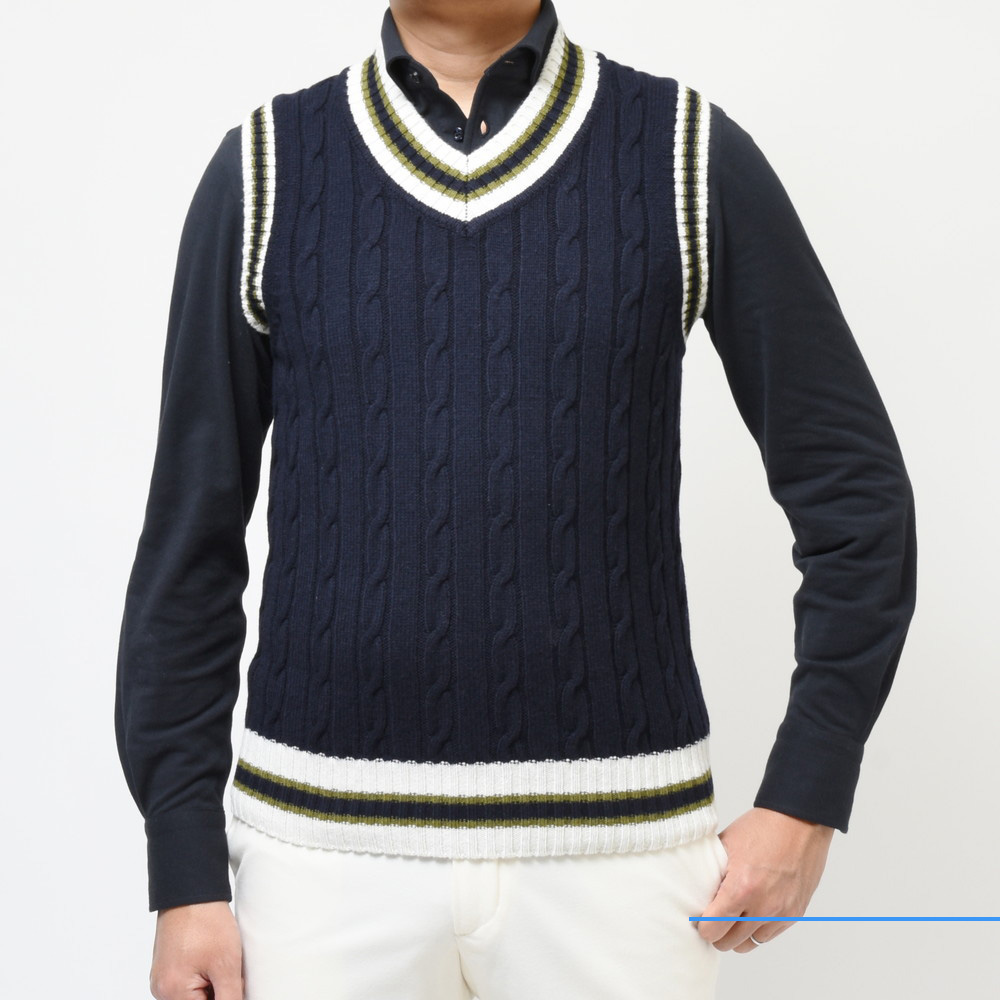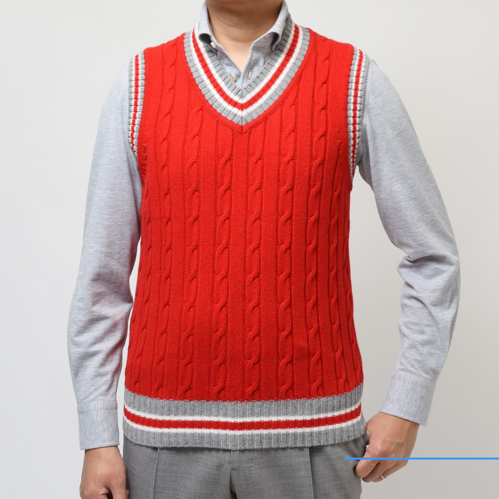 2023SSシーズンよりスタートしたMc George OF SCOTLANDとの別注チルデンベスト、今シーズンもカラーバリエーション豊富にご用意しております。