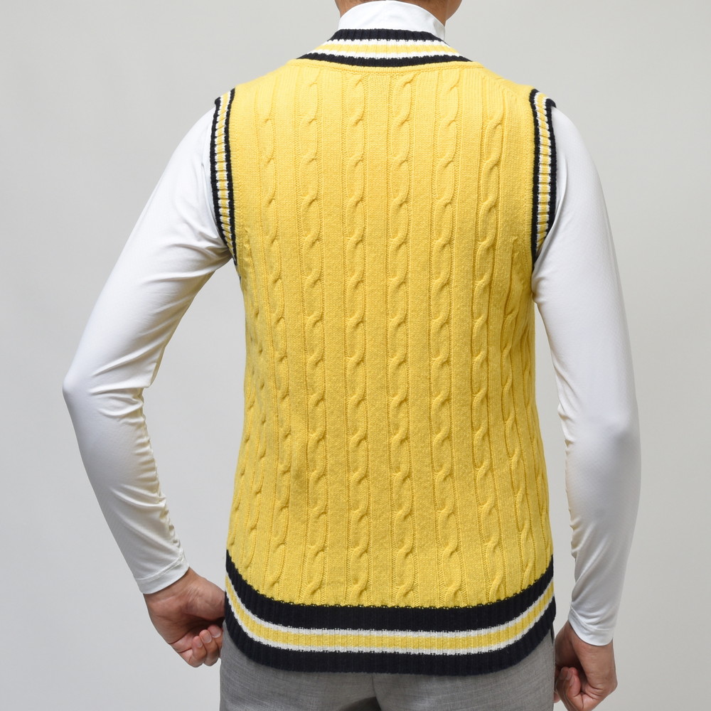 何といいますか、美しいコースでプレーすることで気持ちがリフレッシュすると思いますが、ニットベストというアイテムは同時に心の余裕も与えてくれそうな気がするんですよね。
