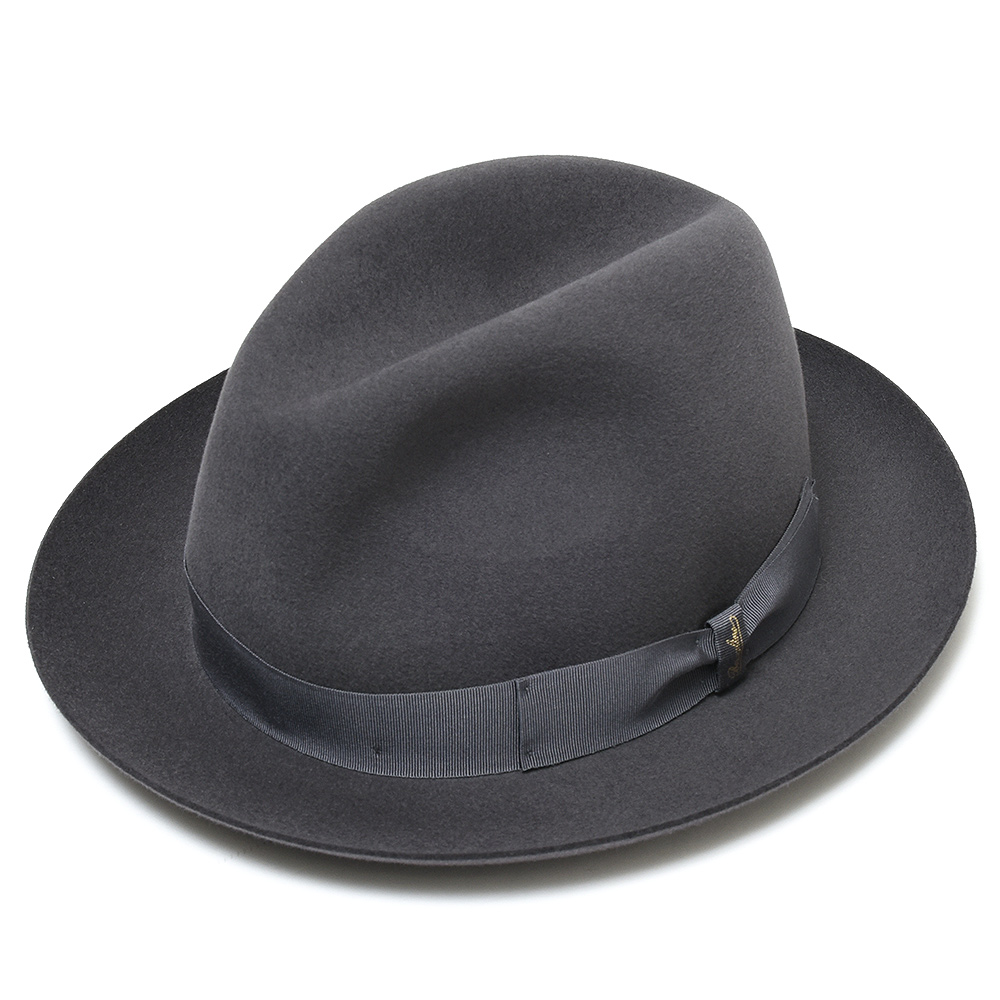 Borsalino(ボルサリーノ)のラビットファーフェルトハットの中ではエントリーになるモデルでして、上質なフェルトをライトに仕上げ、美しく成型することで独自のジェントリズムと色気あるムードを表現しています。