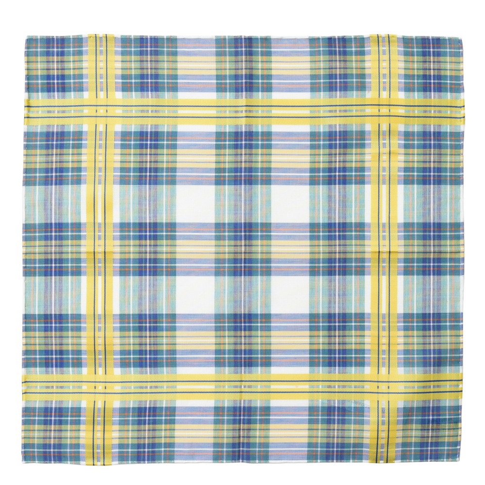 マドラスチェックのように複雑に交差する色使いが素敵なチーフ。