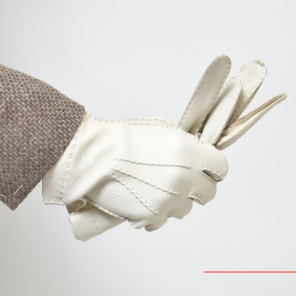 レザーグローブが持つエレガンスを最大限に活かす用、スキニーなフォルムに見せるべくライニングを取り払いました。