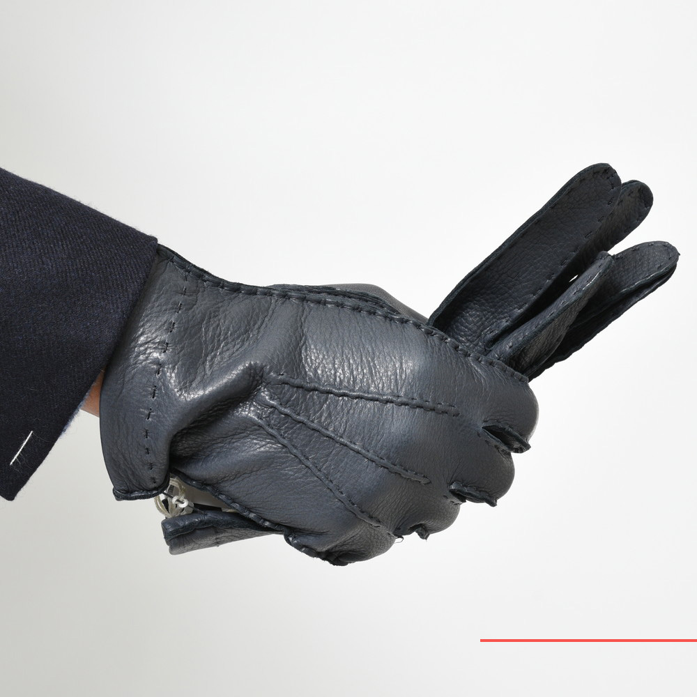 もちろん防寒性という点ではライニング付に劣りますが、ドレススタイルに合わせるグローブとして、防寒性よりもっと大切なことは“見た目のシャープさ”これに尽きます。