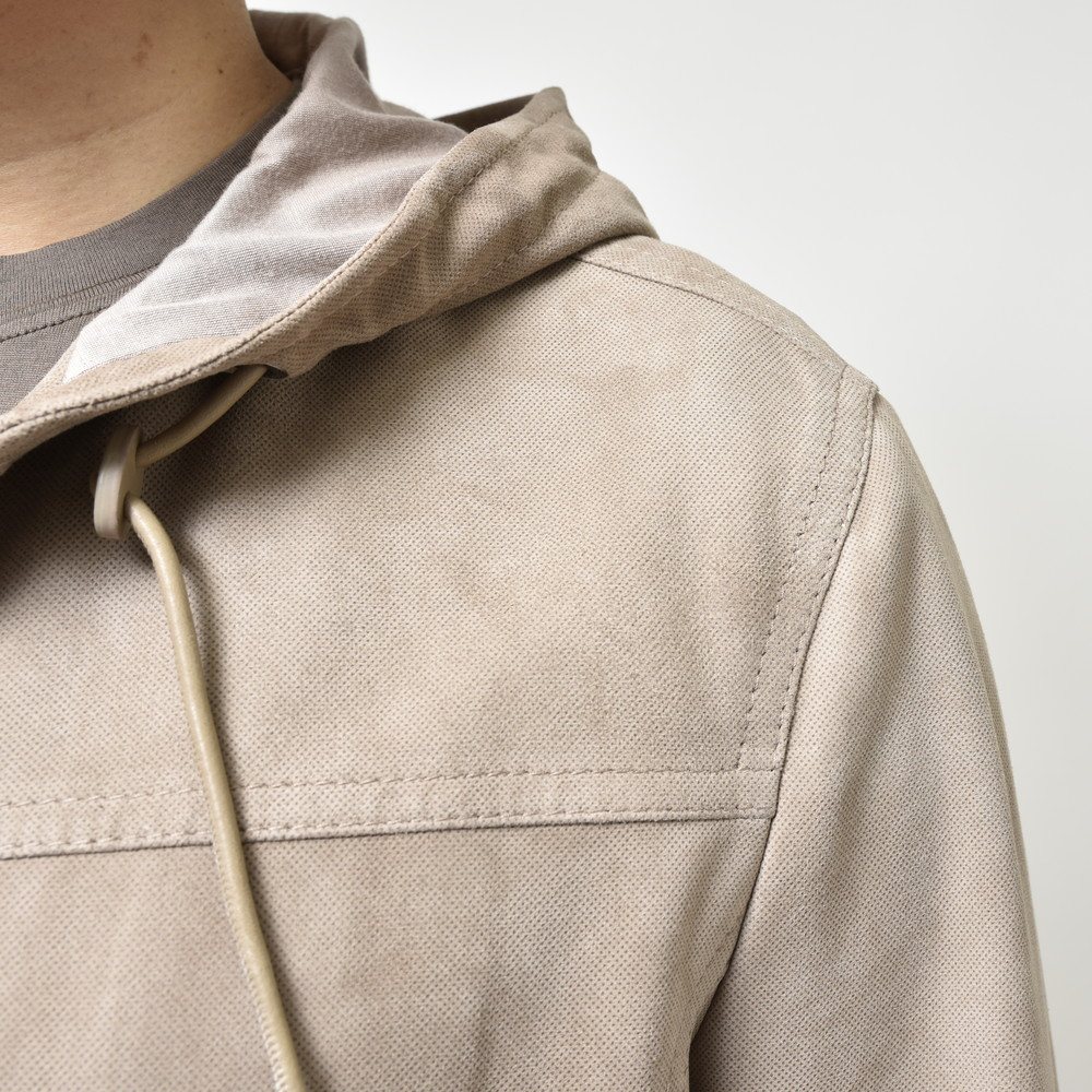 ALTACRUNAのラインナップとしてはもっと多くのアイテムがあるんですが、その中からバイヤー陣が厳選して毎シーズンセレクトさせて頂いています。レザーのフーディ、あるといえばあるんですが、ライダースやブルゾンタイプのものに比べると世に出回っている数はそこまで多くないかと。