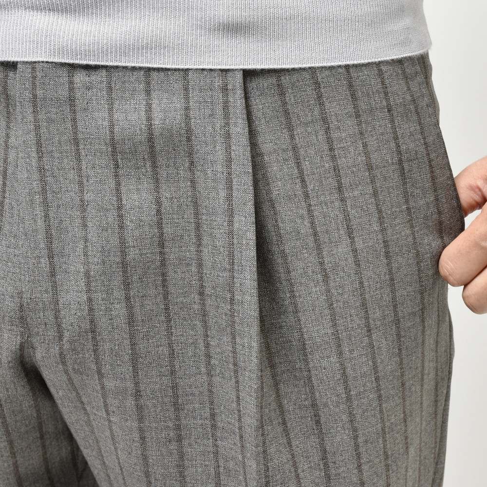グレー系のパンツは本当に使い勝手が良いですし、それに加えてストライプが良いアクセントになってくれるので単品使いでも重宝しそうです。