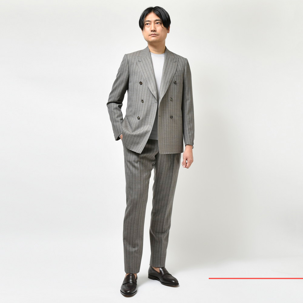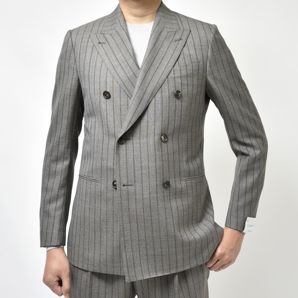 チョークストライプの生地や配色からもCARUSOならではのセンスが感じられます。