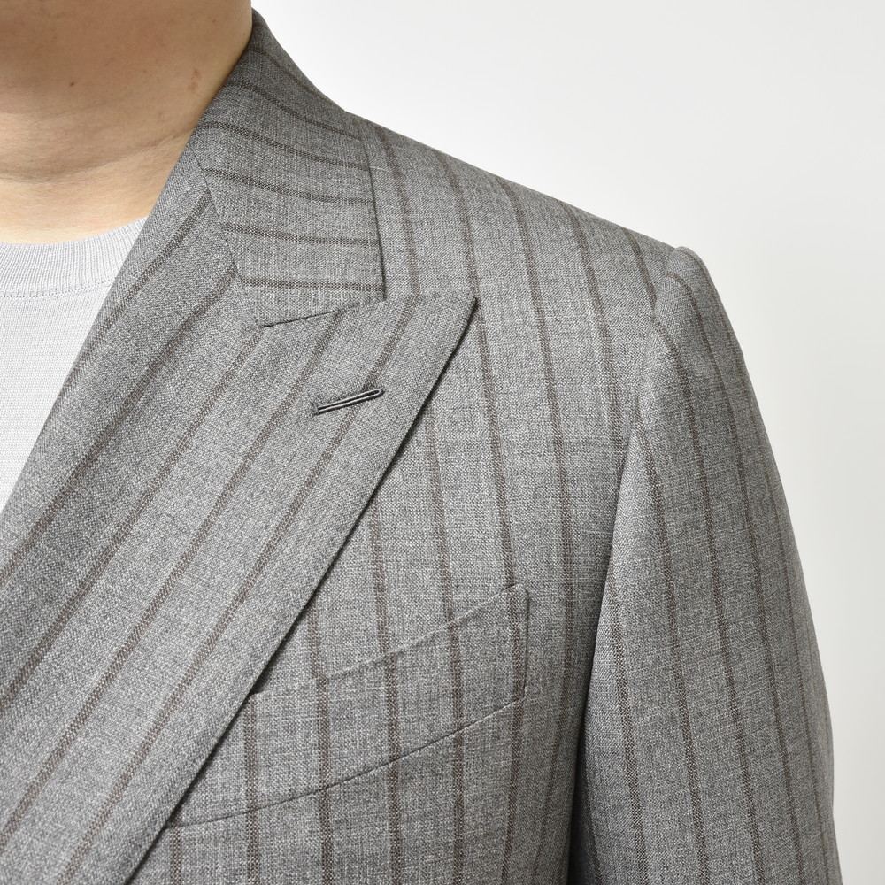 クラシックです、モードです、というカテゴリーの垣根を越えてくる印象のCARUSO、コチラのジャケットもその一つです。グレーベースにストライプを走らせた一着はコントラストがハッキリしていないのも素敵なポイント、これにより押し出し感が控えめになっているんです。