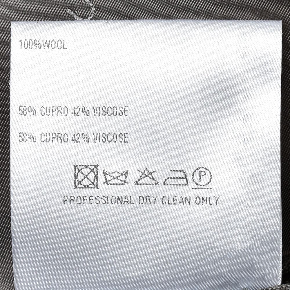 6B腰玉縁、サイドベンツ、ラペル幅11cm、袖アンフィニッシュド(本切羽・開き見せなどの釦付け修理が必要)です。