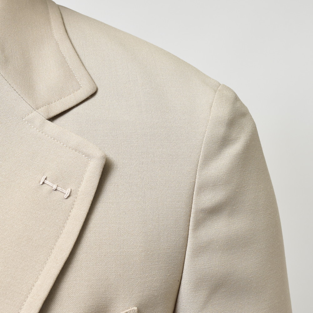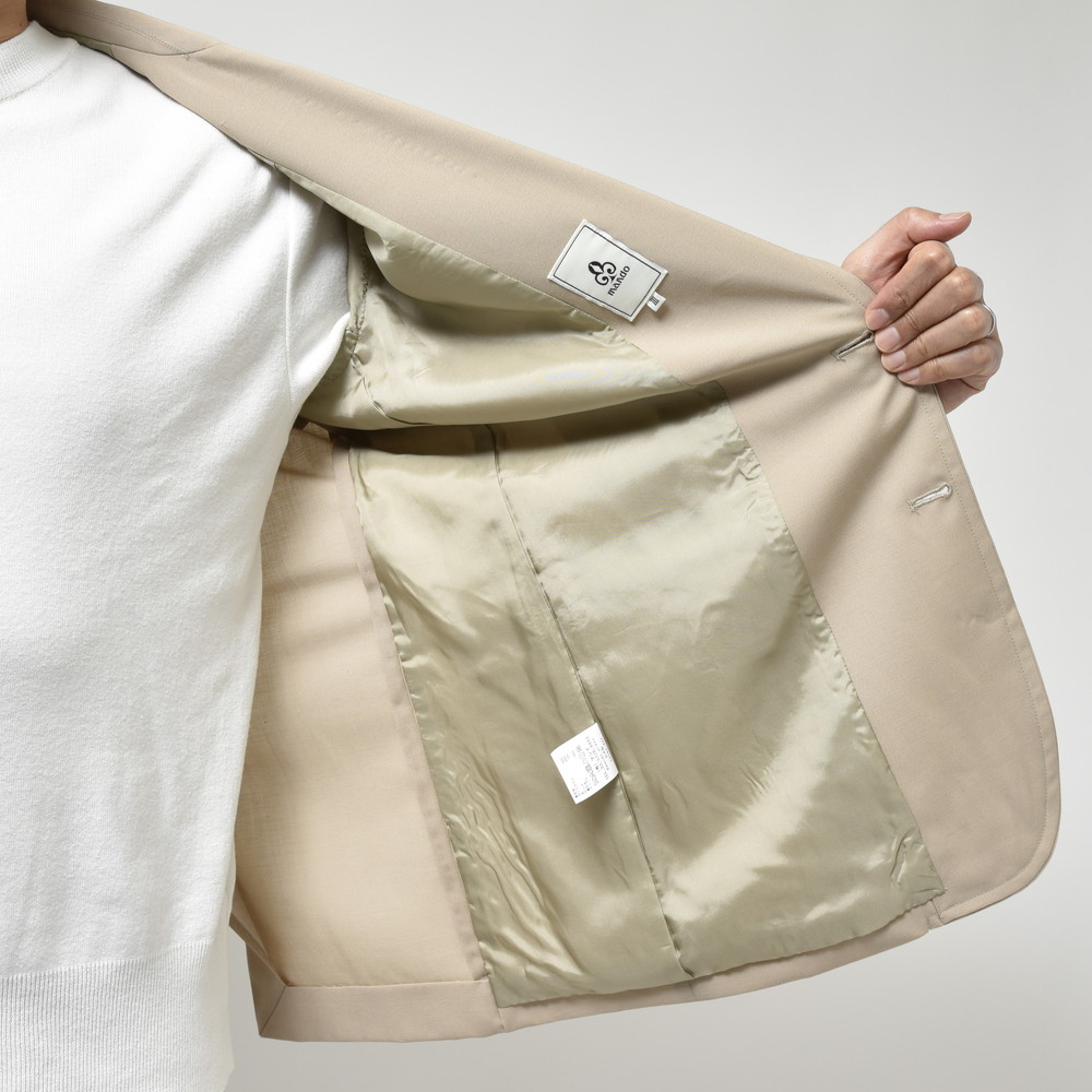 ライトベージュの色合いが非常に美しく、春夏シーズンにはピッタリな一着ではないでしょうか。