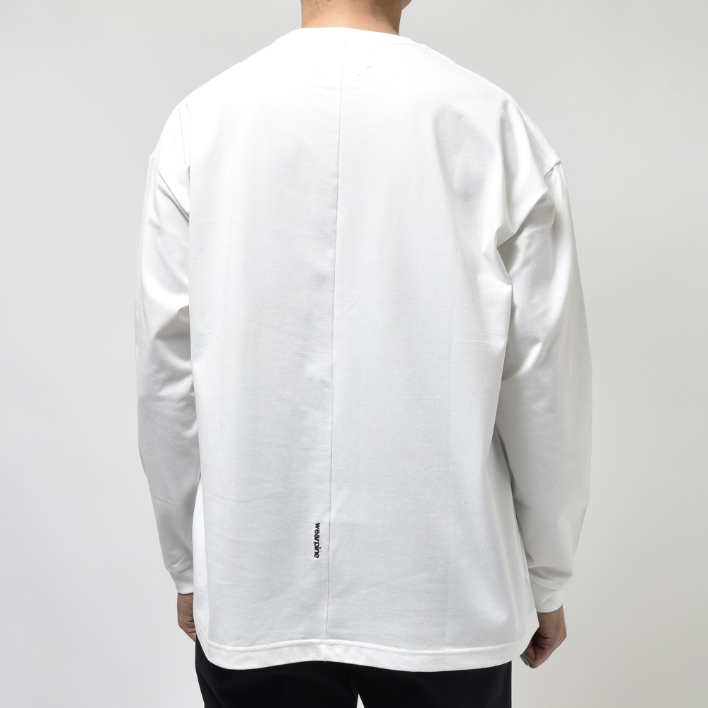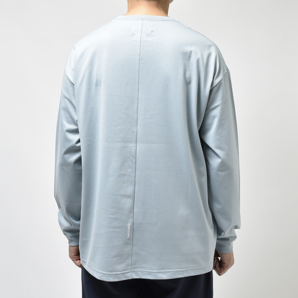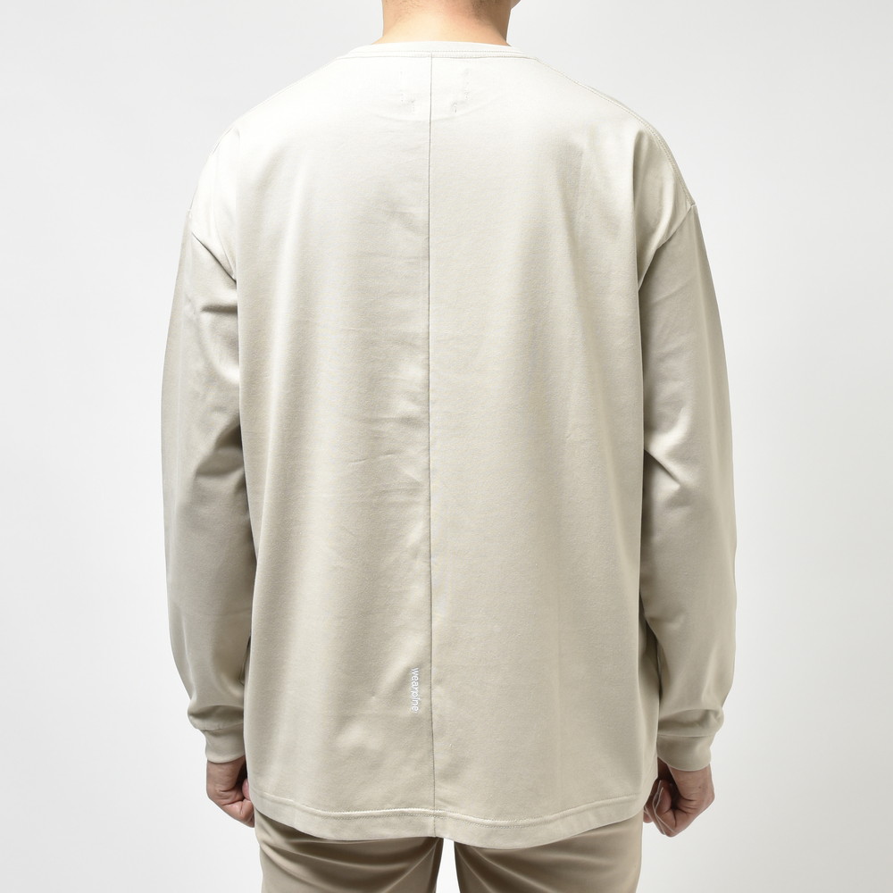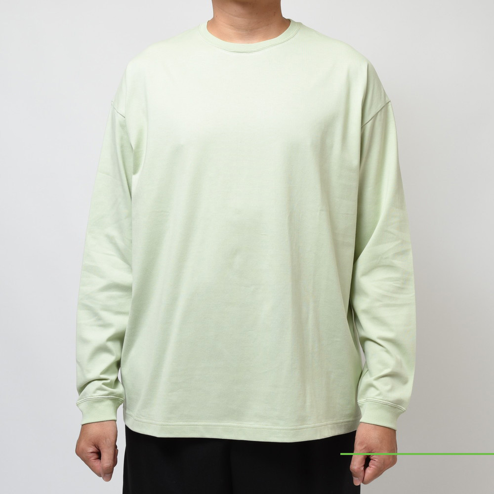 個人的にも愛用している、ちょっと余裕のあるロングスリーブのカットソー、オーバーサイズという訳ではないのでジャケットのインナーとかにもお使い頂けます。あると便利ですし、単体でもそつなく決まってくれるのがポイントかと。