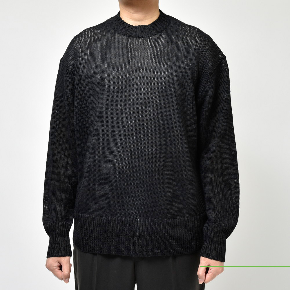 透け感があるニットなのでインナーは入れて頂くのがマストかなと思います。この程良い透け感が清涼感を生んでくれるので、例えばモノトーンのスタイルでも重く見えづらくなるのが良いですね。