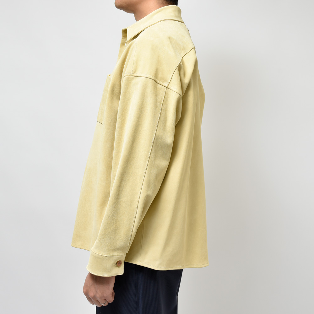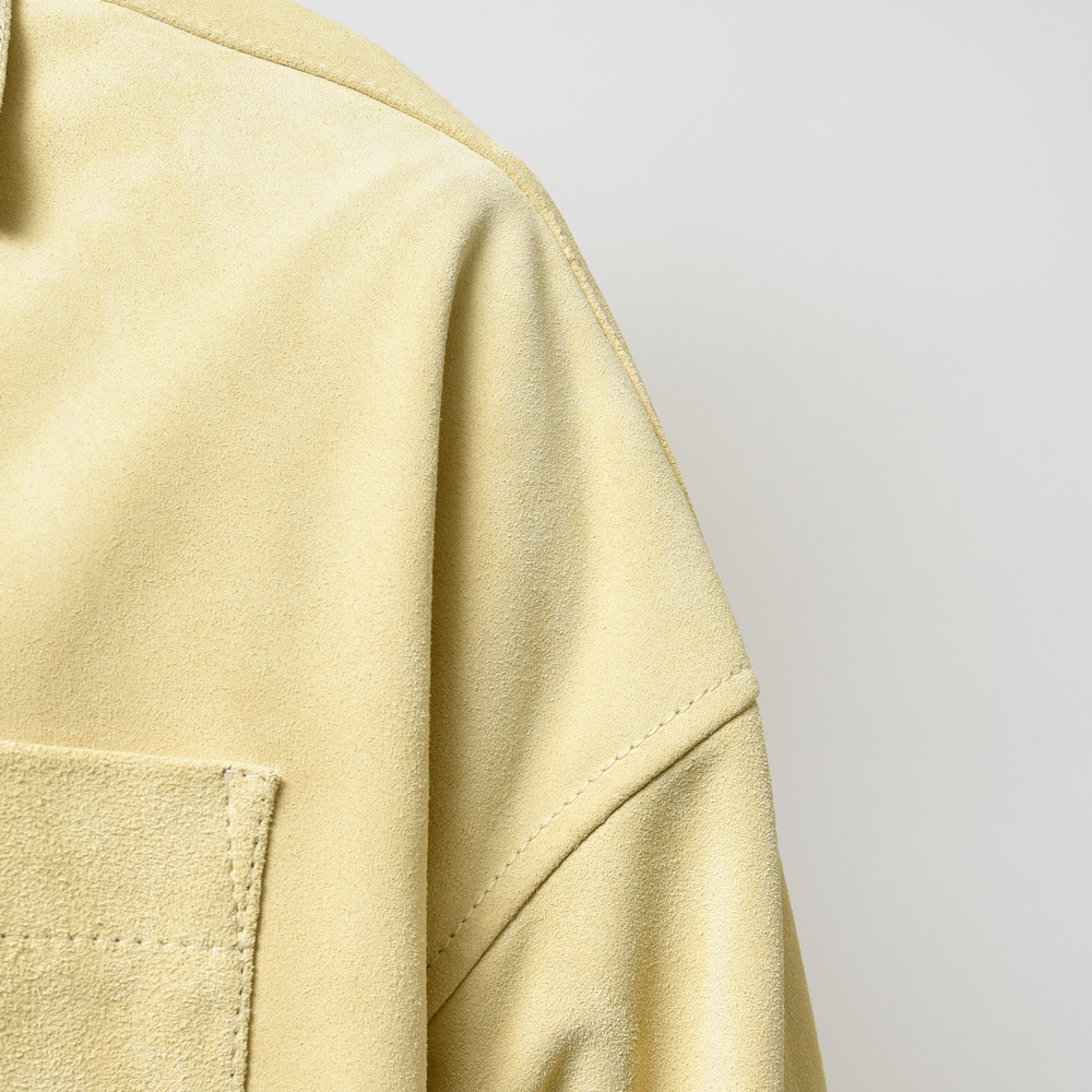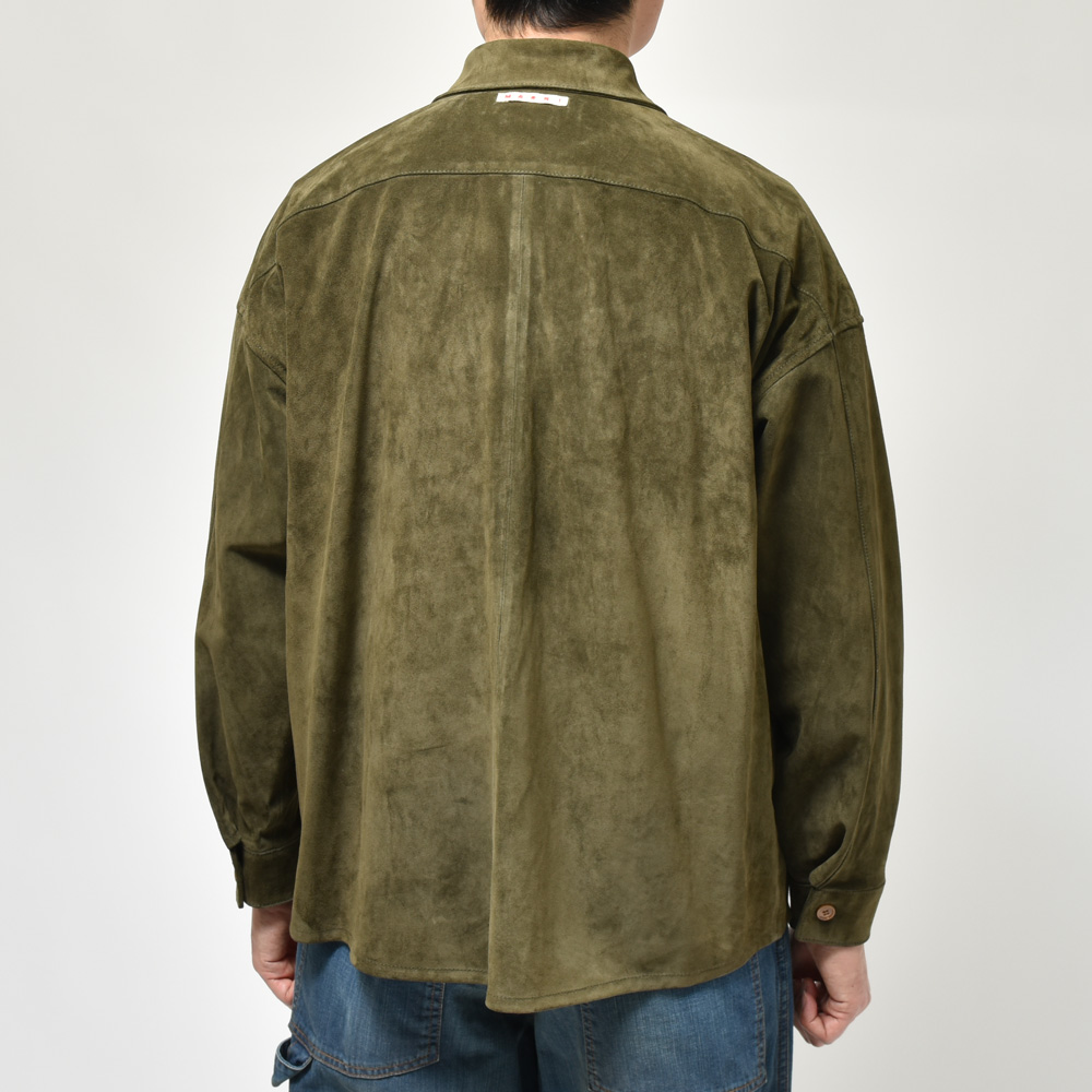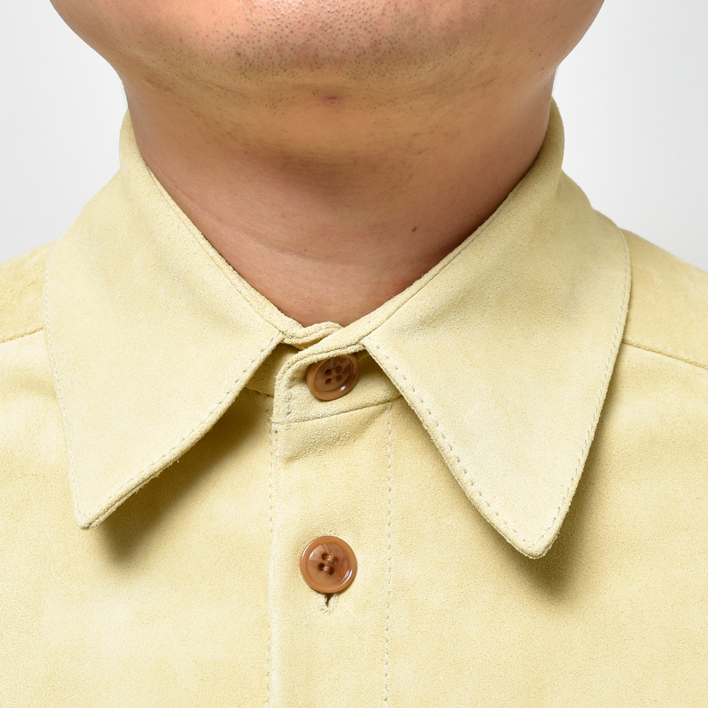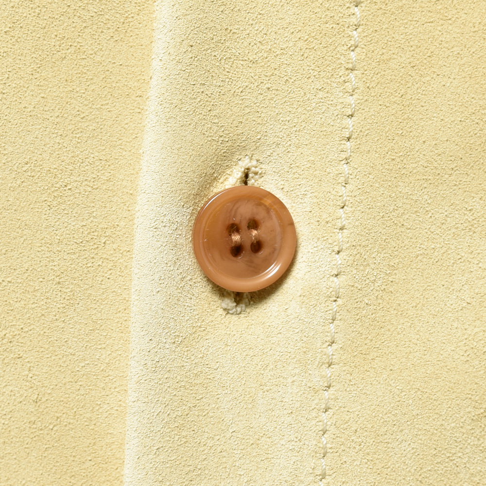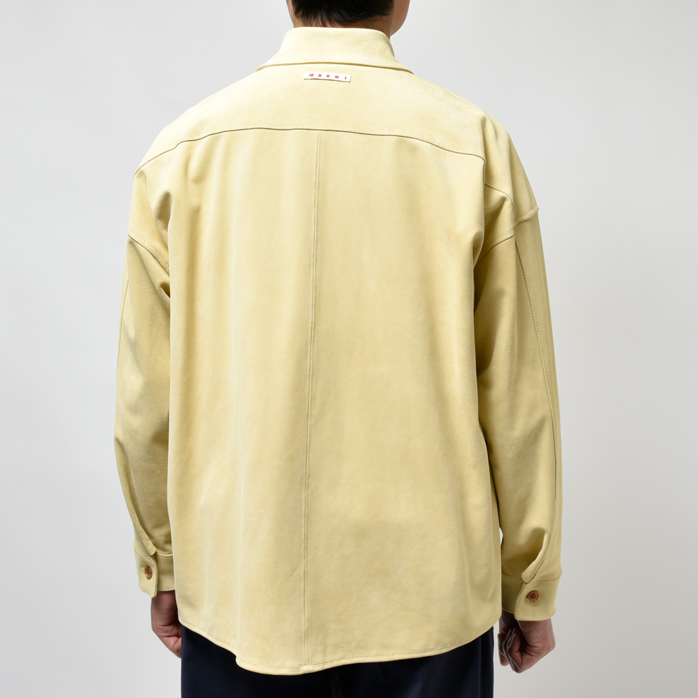 スエードは毛足の短いタイプを採用、カラーは柔和なクリームイエローということでちょっと他にはない感じです。レザーシャツで定番的にみられるブラウンやベージュとはまた違ったMARNI(マルニ)らしいムードが演出できるのも強み。