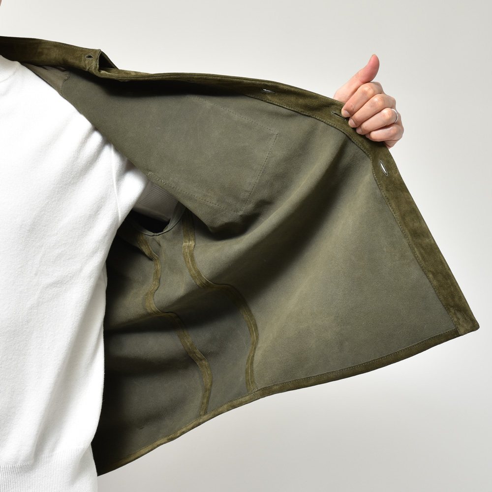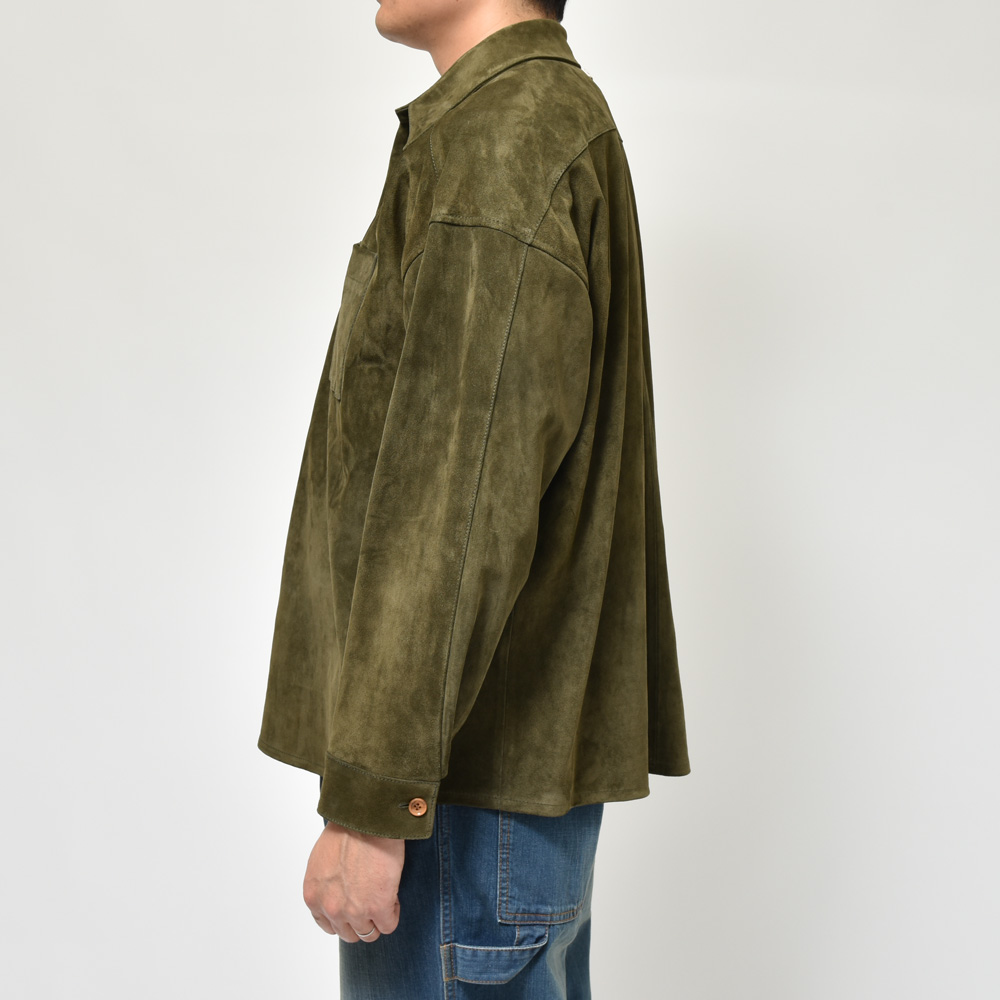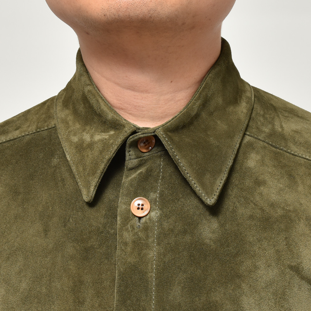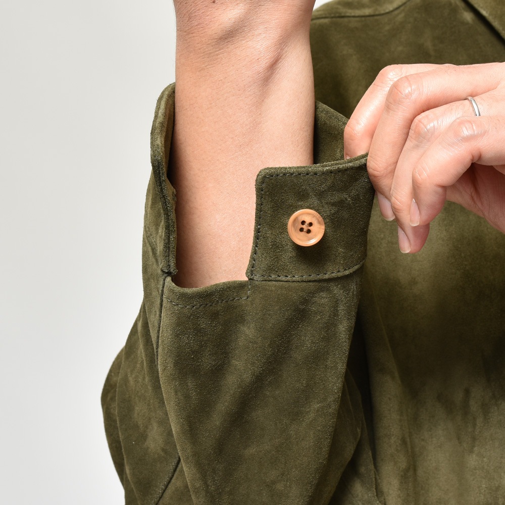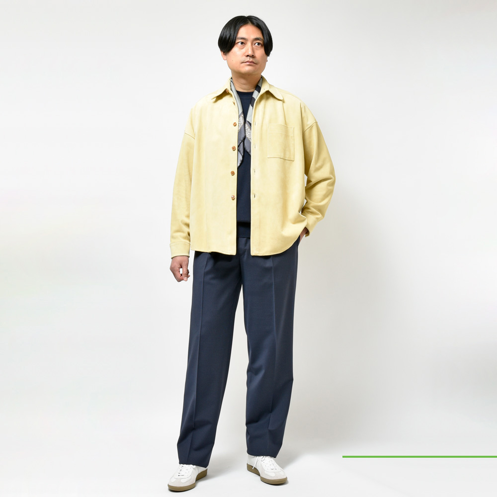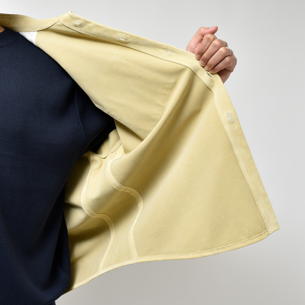 スエードは毛足の短いタイプを採用、カラーは柔和なクリームイエローということでちょっと他にはない感じです。レザーシャツで定番的にみられるブラウンやベージュとはまた違ったMARNI(マルニ)らしいムードが演出できるのも強み。