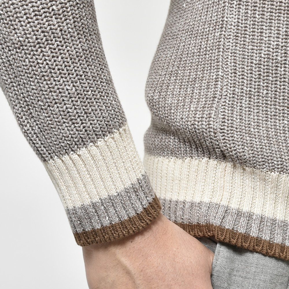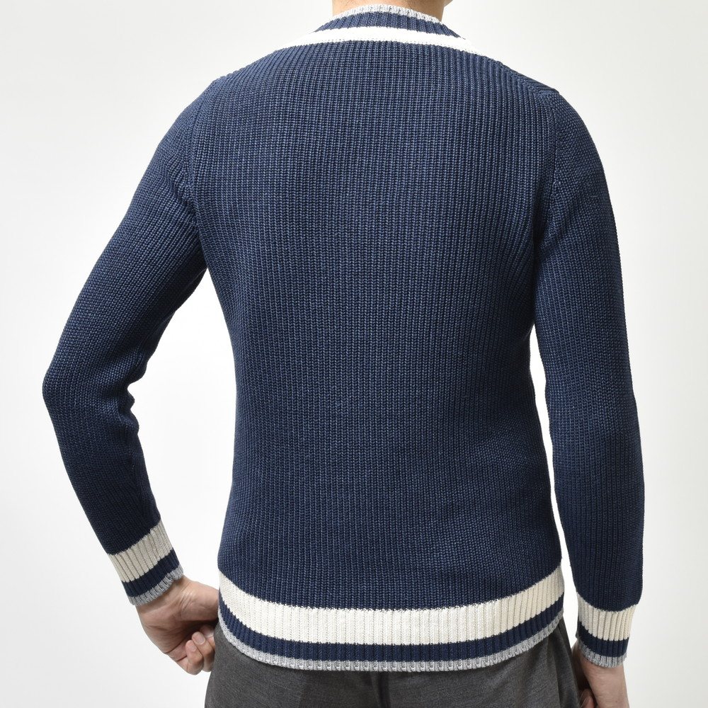 メランジ調の発色、スポーティにならないリブの配色などモダンさがかなり意識されており、GRAN SASSOならではの美意識を感じさせるニットだと思います。