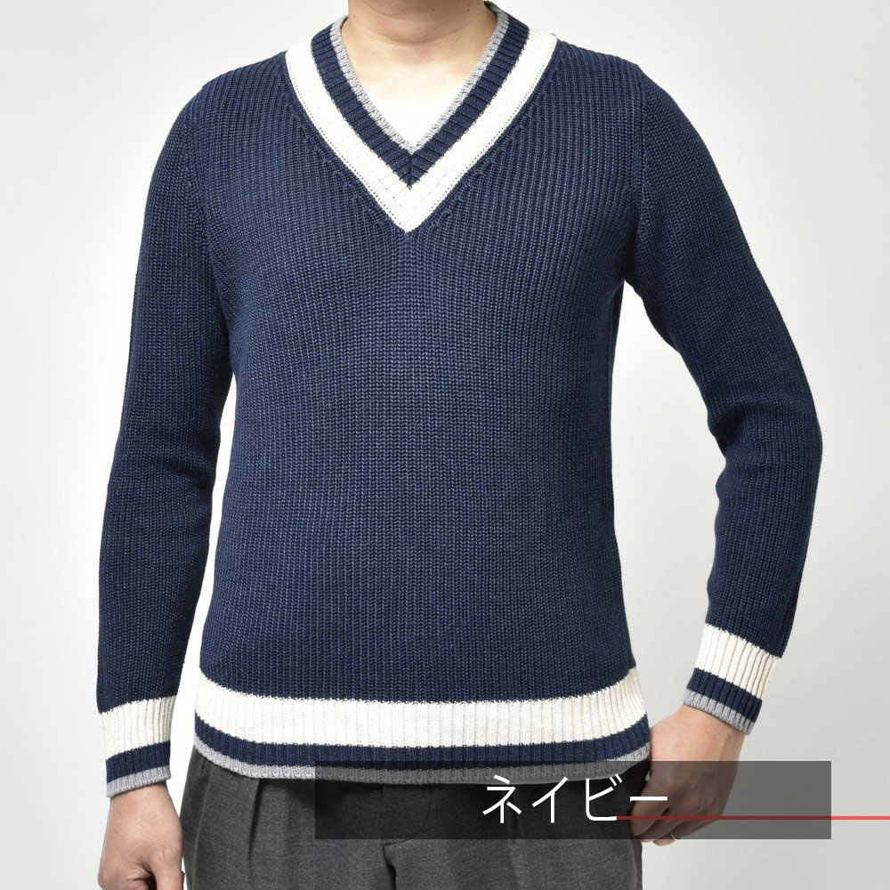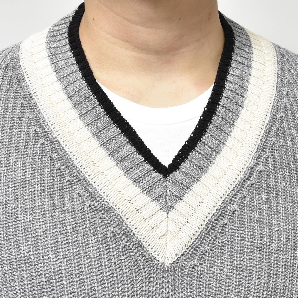 ローゲージリネンコットンVネックチルデンニット 13178/18608
