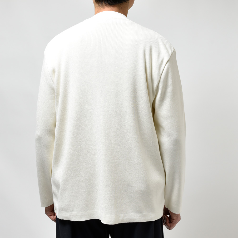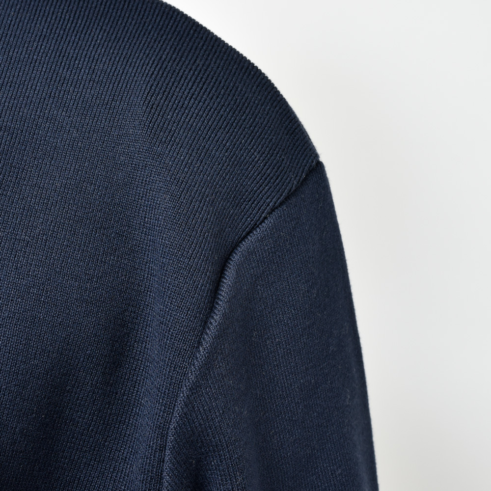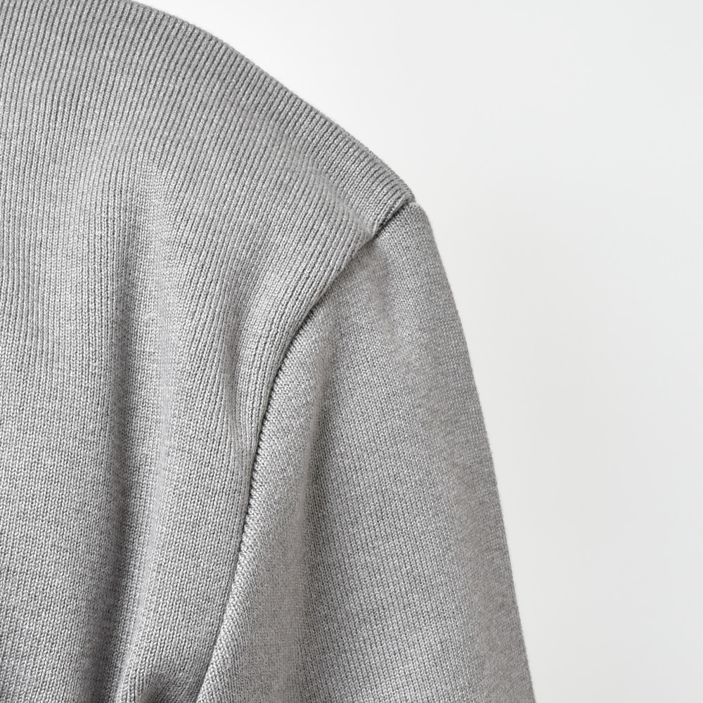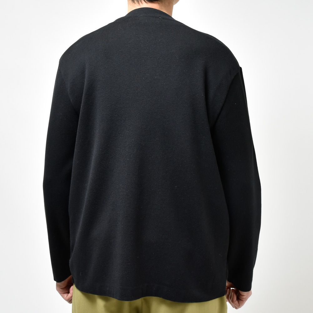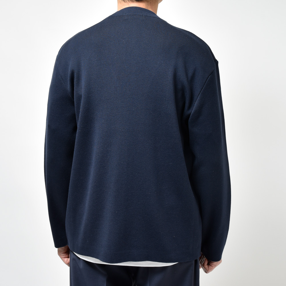 シルエットのバランス、生地の厚みとコシ感。ニット羽織りとして最も完成度が高いかな・・・と思う一着で、とにかく便利に尽きるというアイテムですね。