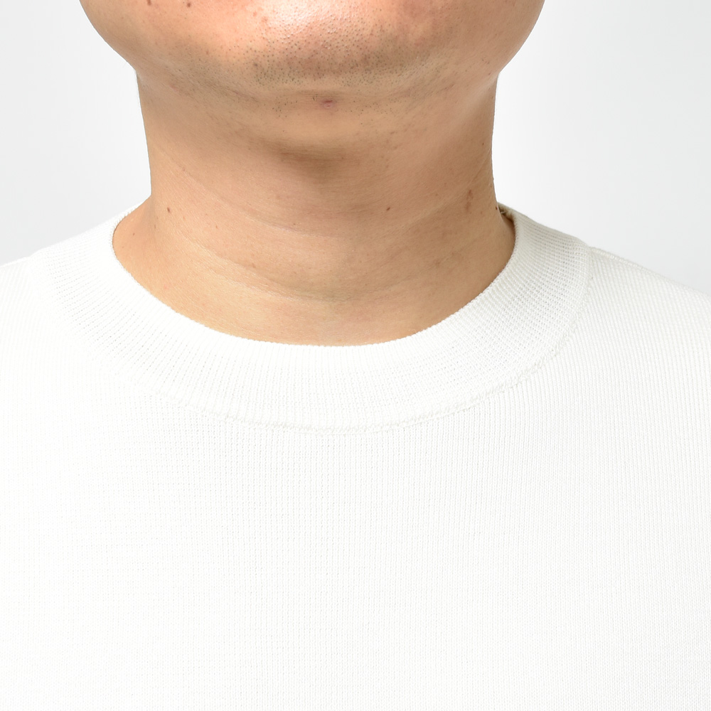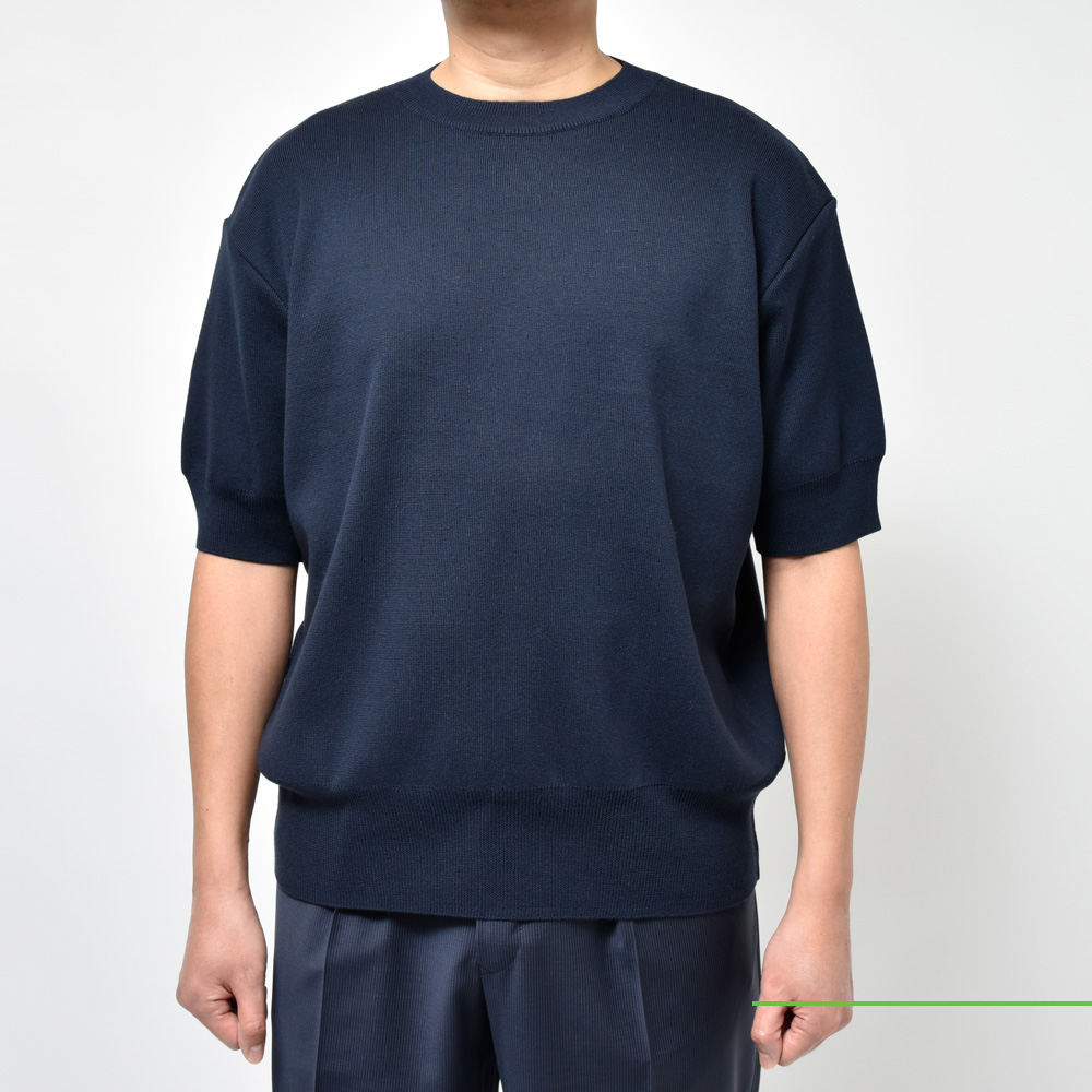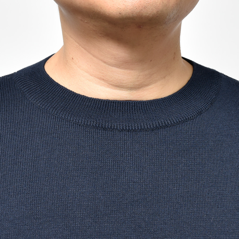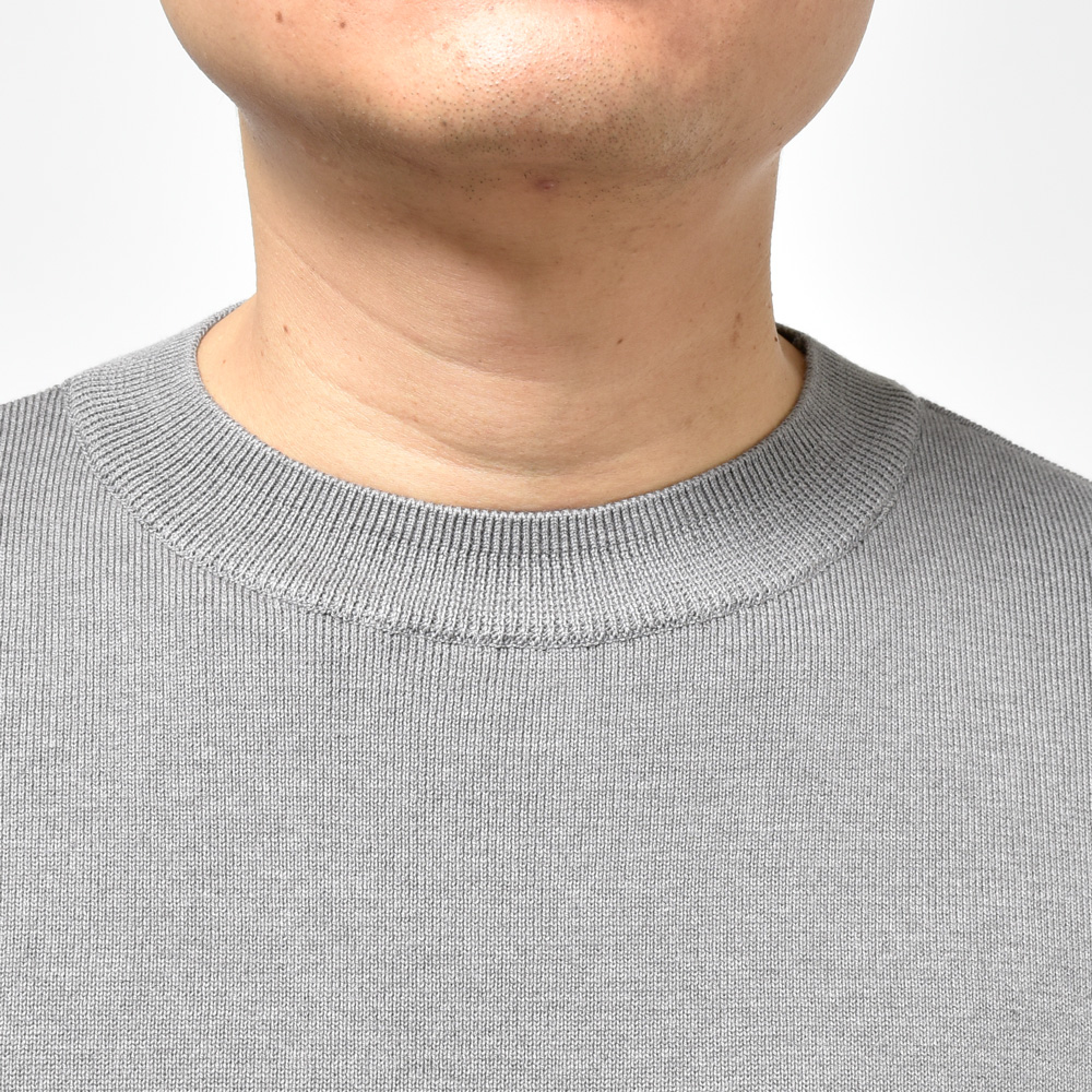 イタリア系のファクトリーですとジャケットのインナーに使いやすい、フィット感の高いシルエットが多いですが、こちらは少し緩やかで、マイルドさを感じさせるタイプですね。
