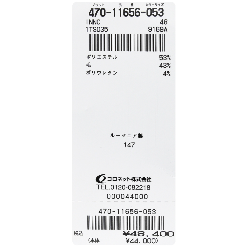 : 表地:ポリエステル53% ウール43% ポリウレタン4%