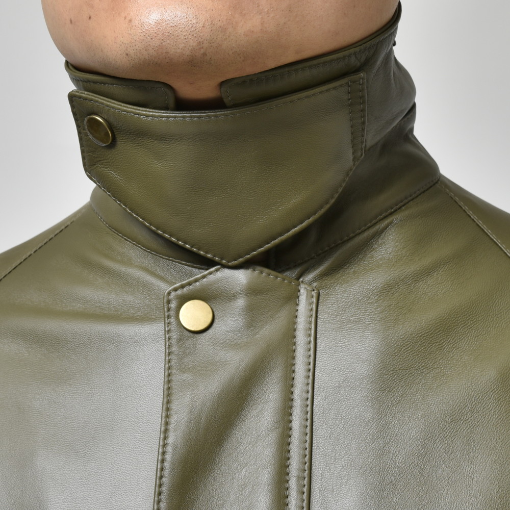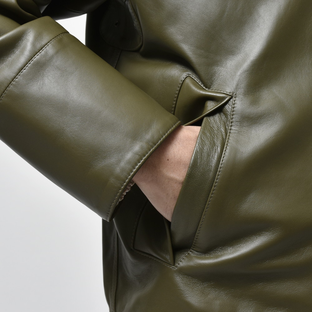 スペイでは短く、ビデイルでは長い、そんな方に丁度良いレングスのトランスポートをレザーで上品に、イタリアのサルトリアルなテクニックを用い仕立てているのがこちらです。