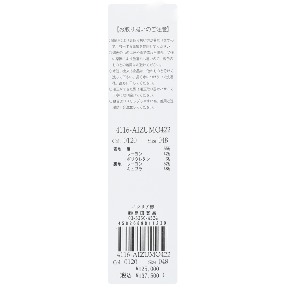 ・ファブリック:リネン55% レーヨン42% ポリウレタン3%