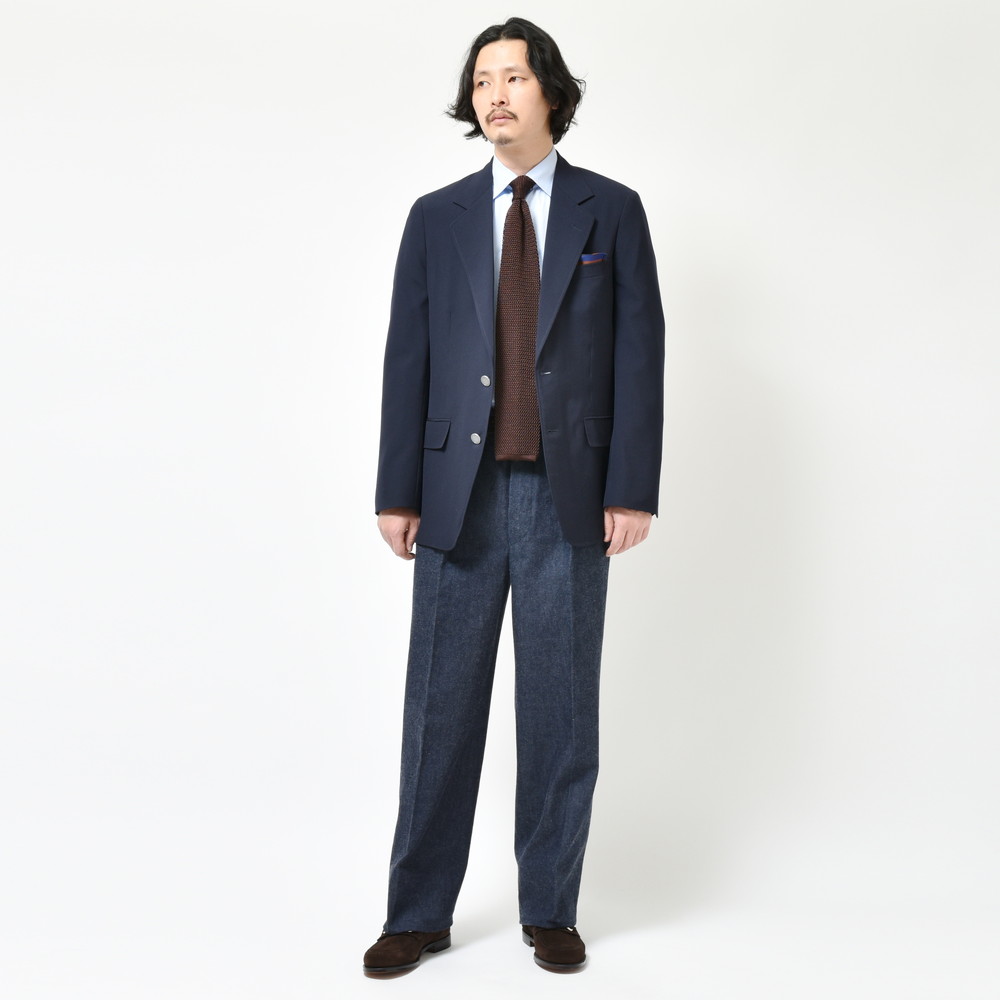 ネイビーブレザーという普遍的なアイテムをmandoのデザイナーである高巣 満導氏に作ってもらった一着。氏のフィルターを通すことで生まれた一着はこれからも長く提案できるアイテムとなっています。