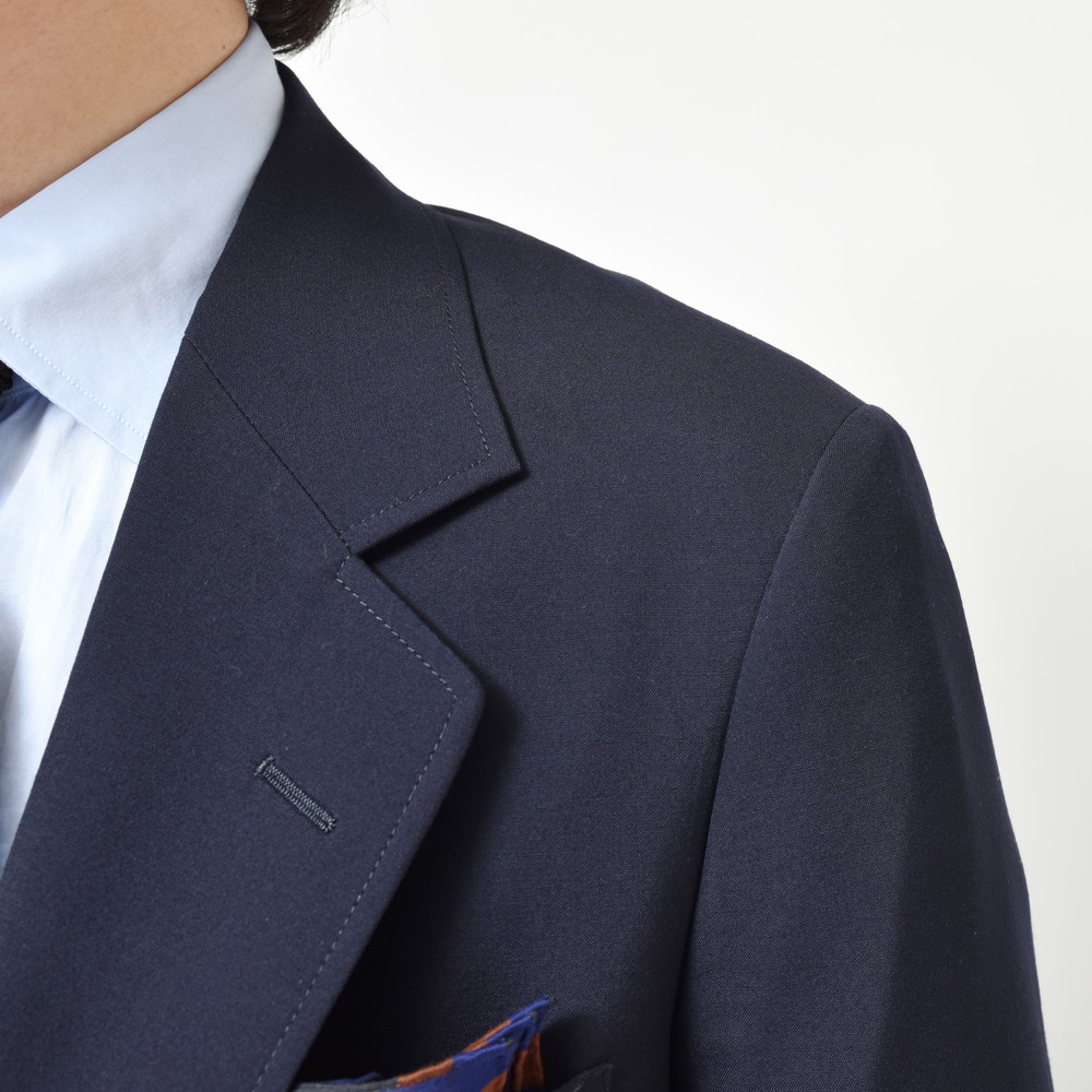 「新しいクラシック」というコンセプトに相応しいニューベーシックなネイビーブレザーはファーストモデルに変更を加えずにリピートオーダーしました。