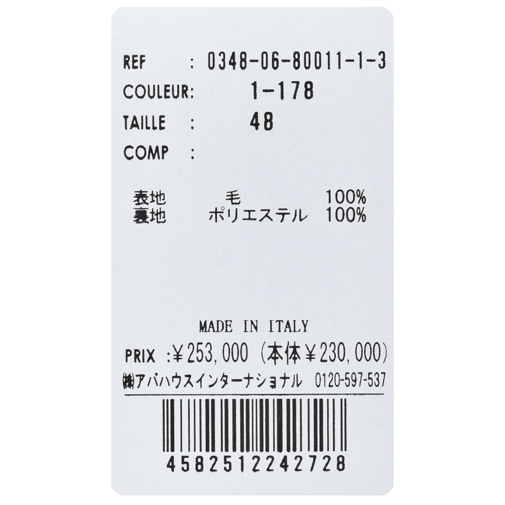 袖:アンフィニッシュド(2ボタンor3ボタン仕様、本切羽・開き見せなどの釦付け修理が必要)