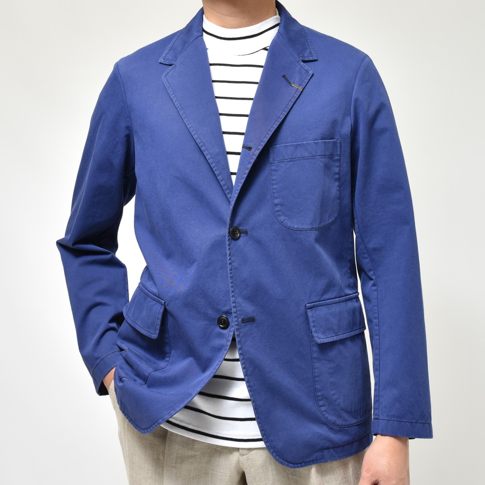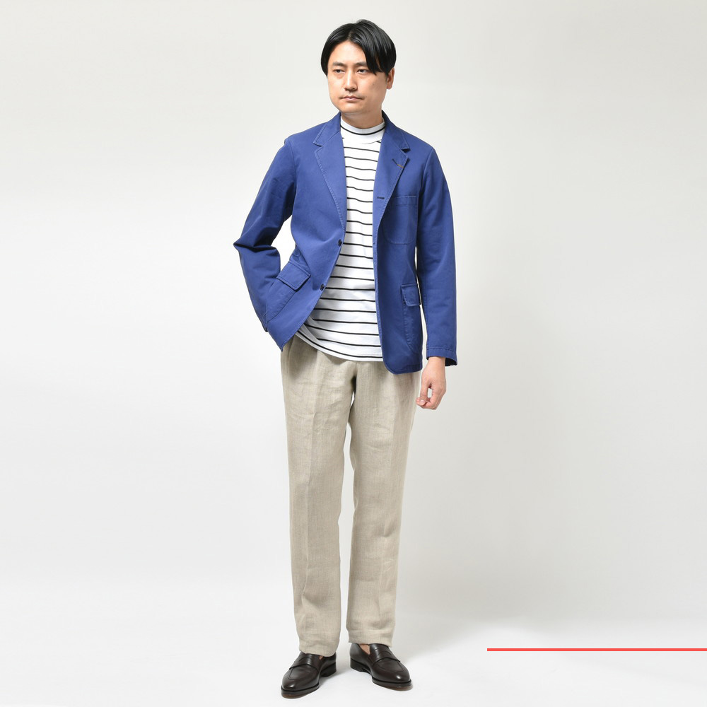 ベースとなっているモデルはBoating Blazerボーティングブレザーで、裏地や袖ボタンを省略することでラフに着られるワークテイストを表現。
