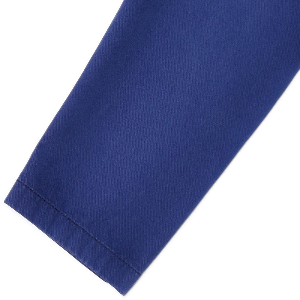 インクブルーのコットン生地といえばフレンチワークの代表的なファブリックでして、様々なフランスワークブランドが採用してきた歴史があります。ORBIUMではその空気感を取り入れるべくこの生地を製品染めで提案しているようです。