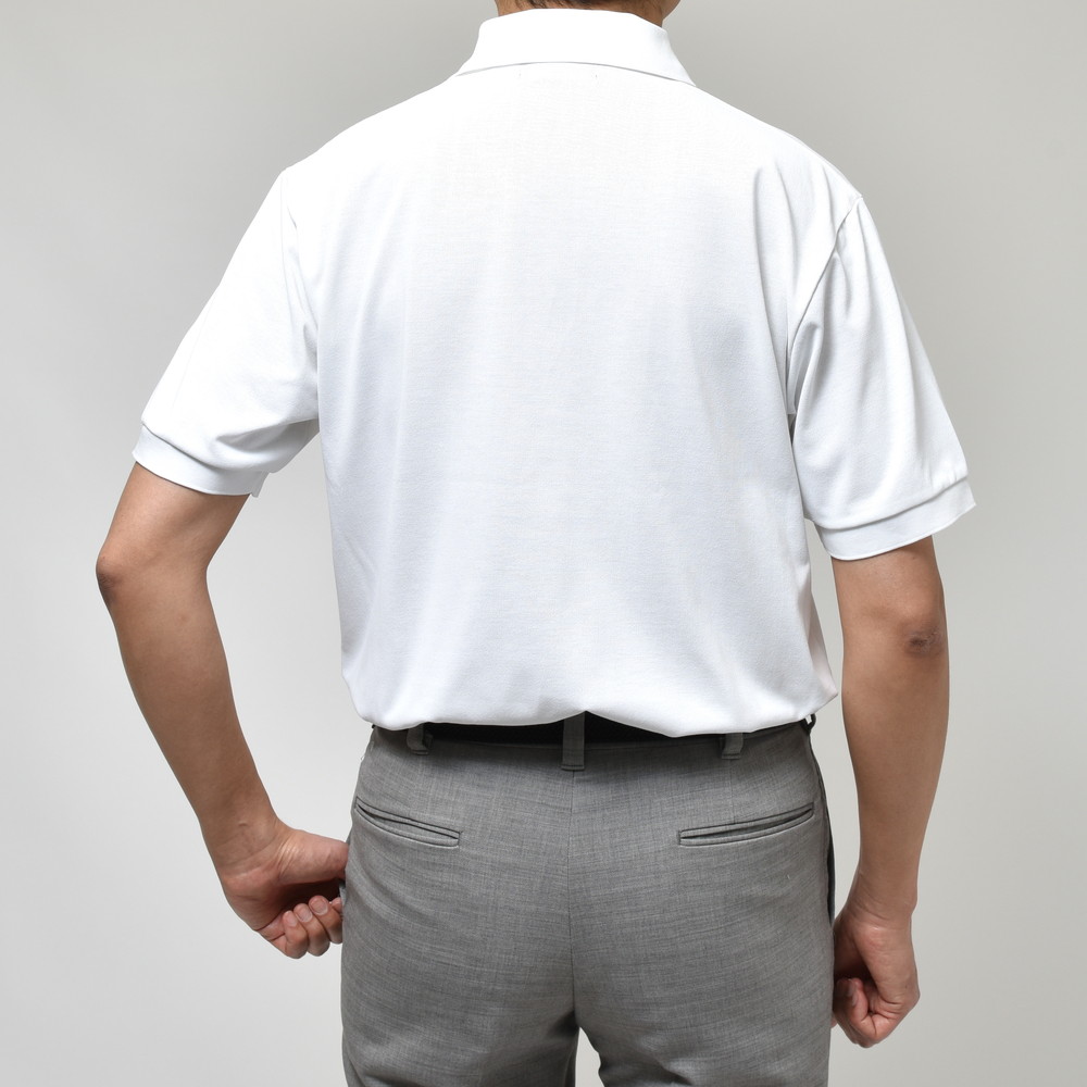 台襟こそありませんがジャケットのインナーにも収まりやすいバランスの襟になっていますので、ゴルフ場への行き帰りからプレーまで使って頂ける有用性を持った仕上がりになっています。