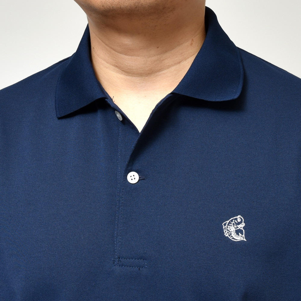 HAND ROOM(ハンドルーム)のguji golf別注ポロは強撚糸を用いたコットンのような、しなやかさとドライ感を併せ持つポリエステル天竺生地を採用し、シルエットも快適にゴルフがプレーできるようオリジナルで整えた完全別注モデルになります。