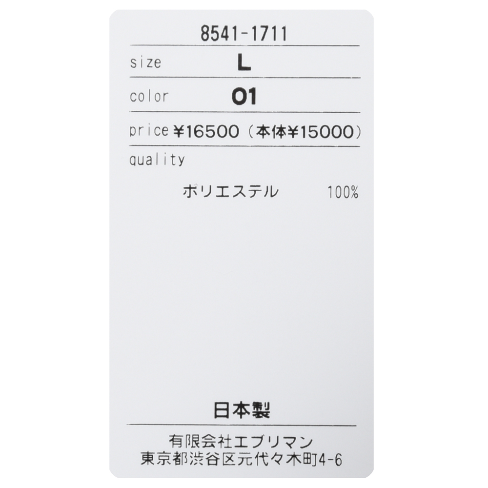 | 着丈 | 肩幅 | 袖丈 | 胸囲 | ウエスト | |