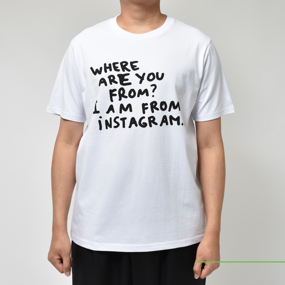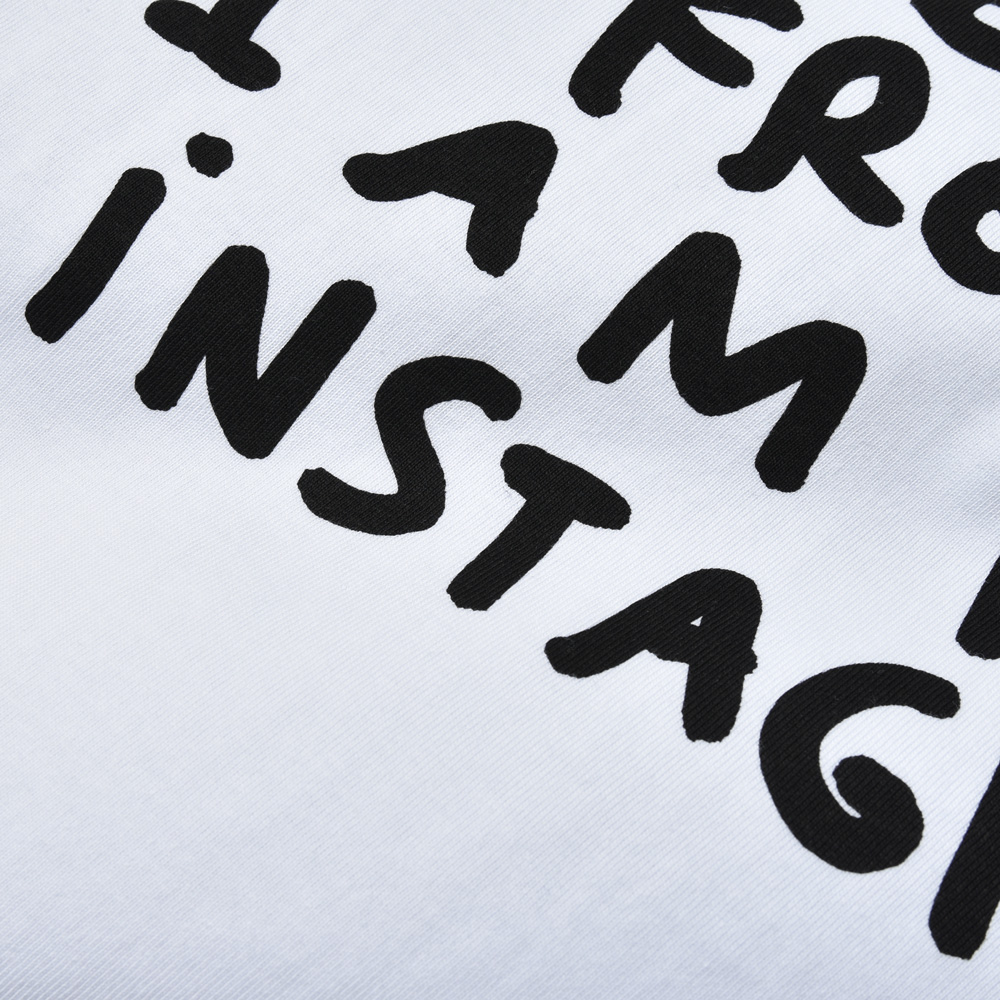 「WHERE ARE YOU FROM? IAM FROM iNSTAGRAM.」デザイナーである彼ら自身もインスタグラムを精力的に行っていまして、それゆえのメッセージなのかなと考察。今の時代感を象徴するようなプリントです。