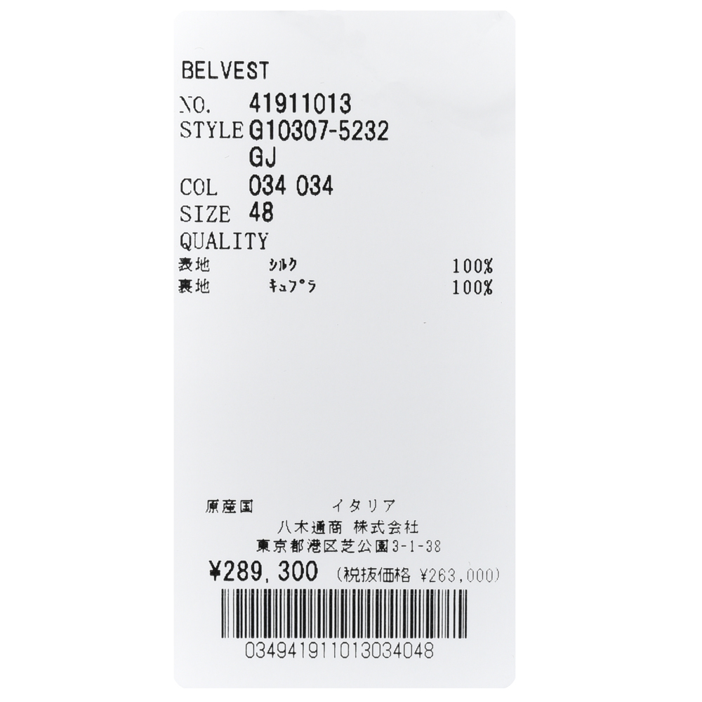 Belvest(ベルベスト)のジャケットといえばこちらですね、副資材をほぼ用いずに仕立てられるJACKET IN THE BOXジャケットインザボックス、gujiのセレクトとしては定番となりました。