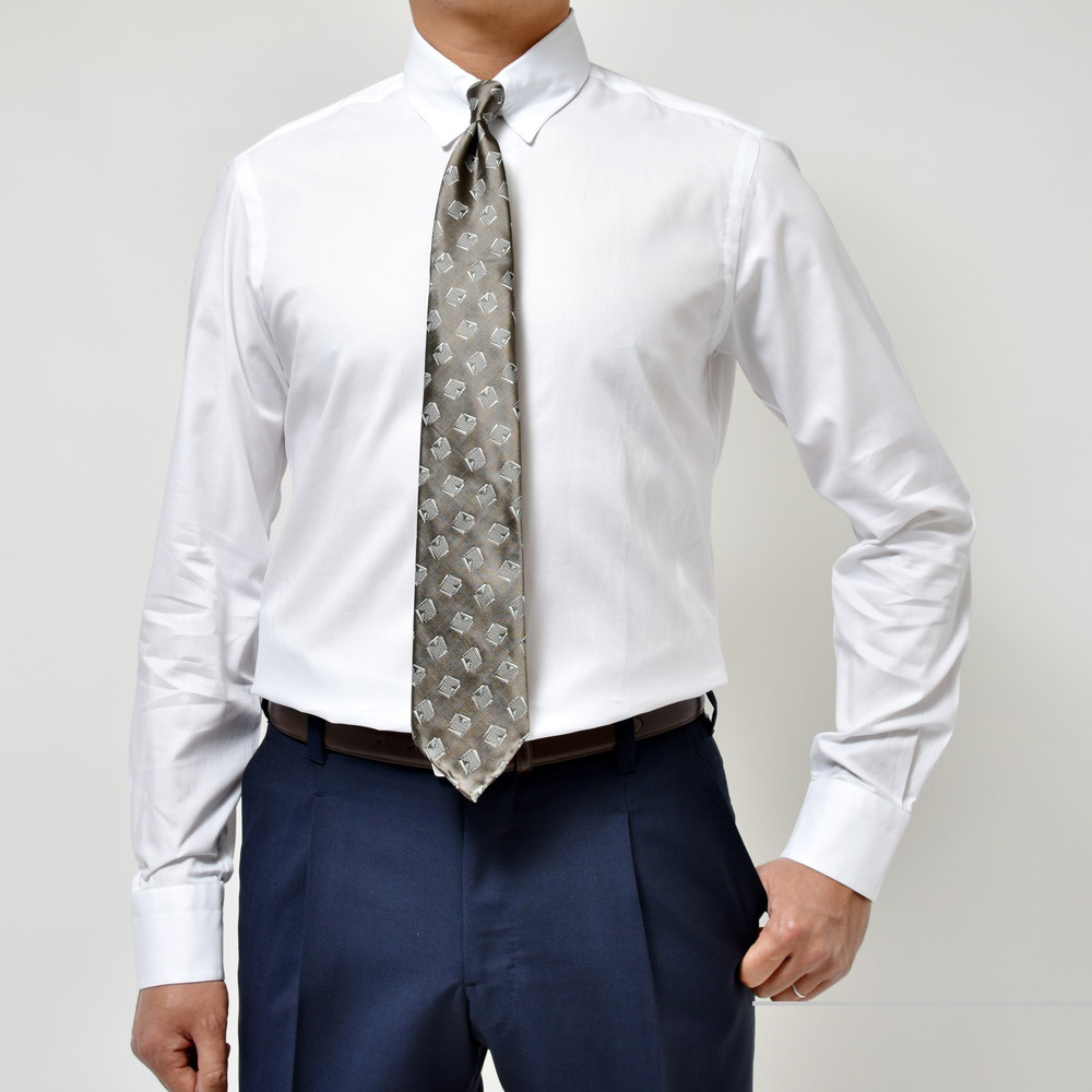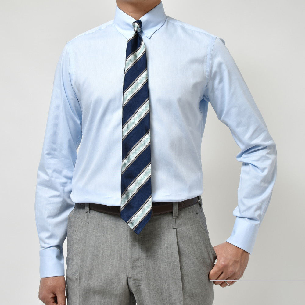 ノットを小さく見せてくれエレガントですし、ドレスとカジュアルの間ぐらいの位置にあるタブカラーは非常に使い勝手の良いドレスシャツなんですよね。