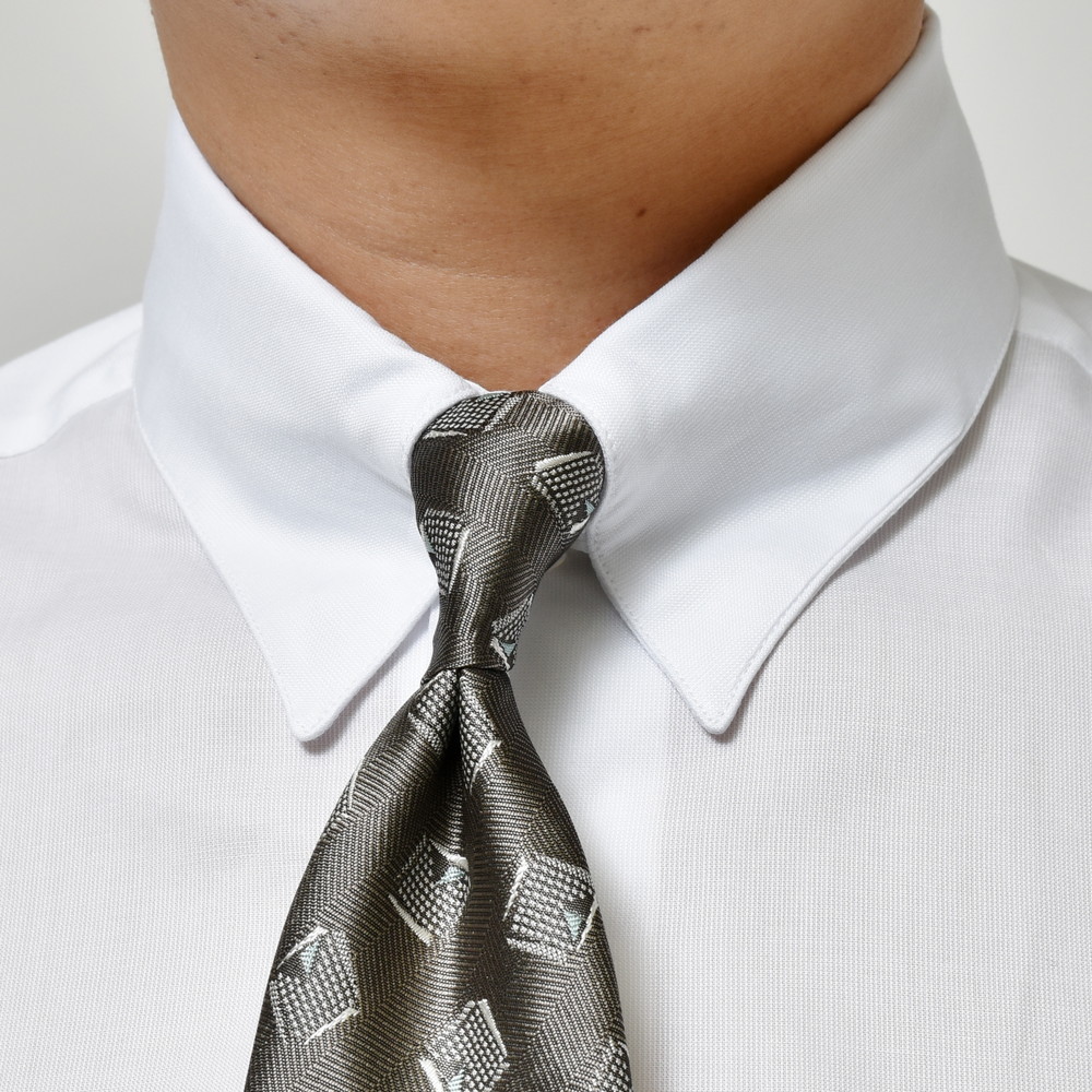 多くのブランドのタブカラーと比べると「少しスペースが狭め」になりますが、コンパクトに結んだネクタイのノットが収まることでとてもエレガントな見え方になり、一味違ったVゾーンの立体感を楽しむことが可能。