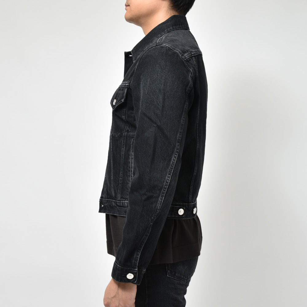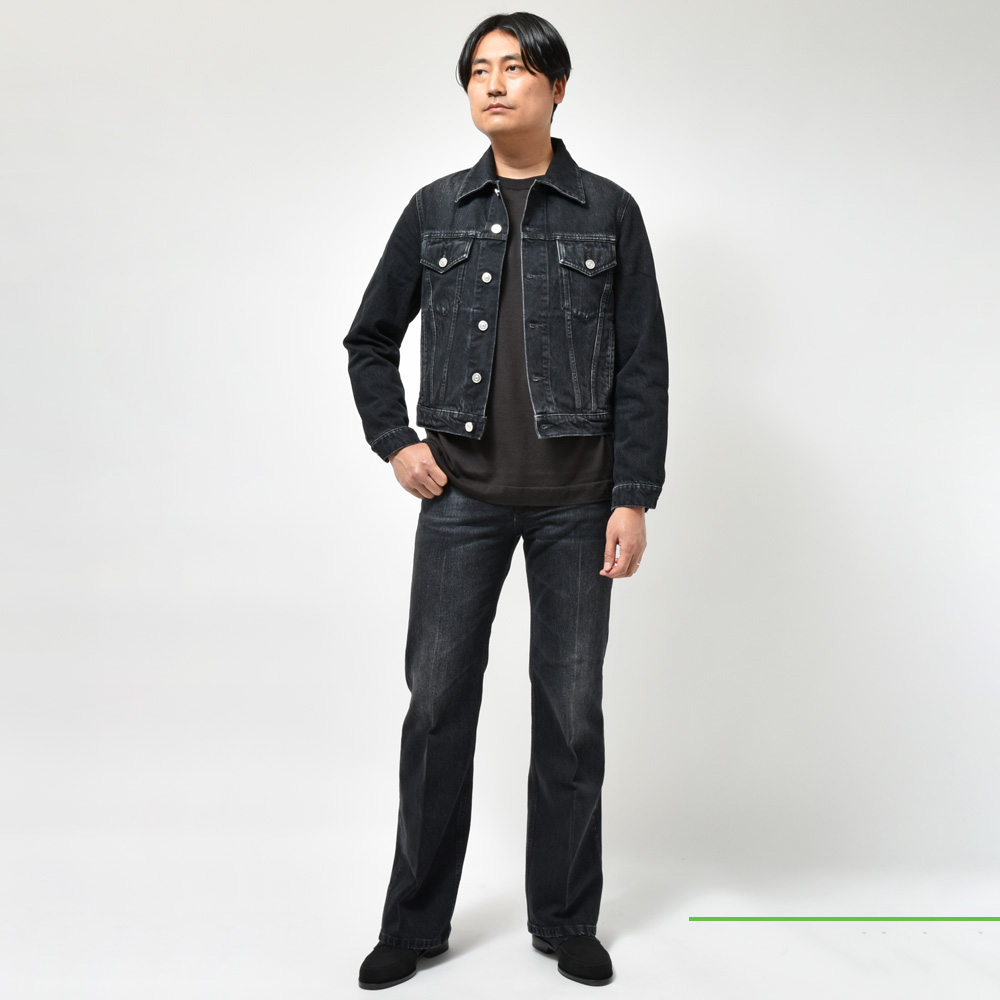 こちらは日本製のデニム生地を採用したトラッカージャケット、クラシックフィットと呼ばれるコンパクトなシルエットに。現在の国内シーンの視点から見ると新鮮に映ります。ただ、実際に着用するとスタイルがキリッと洗練されて見えてカジュアルでありながらも洗練されたムードを感じさせるパワーがあります。