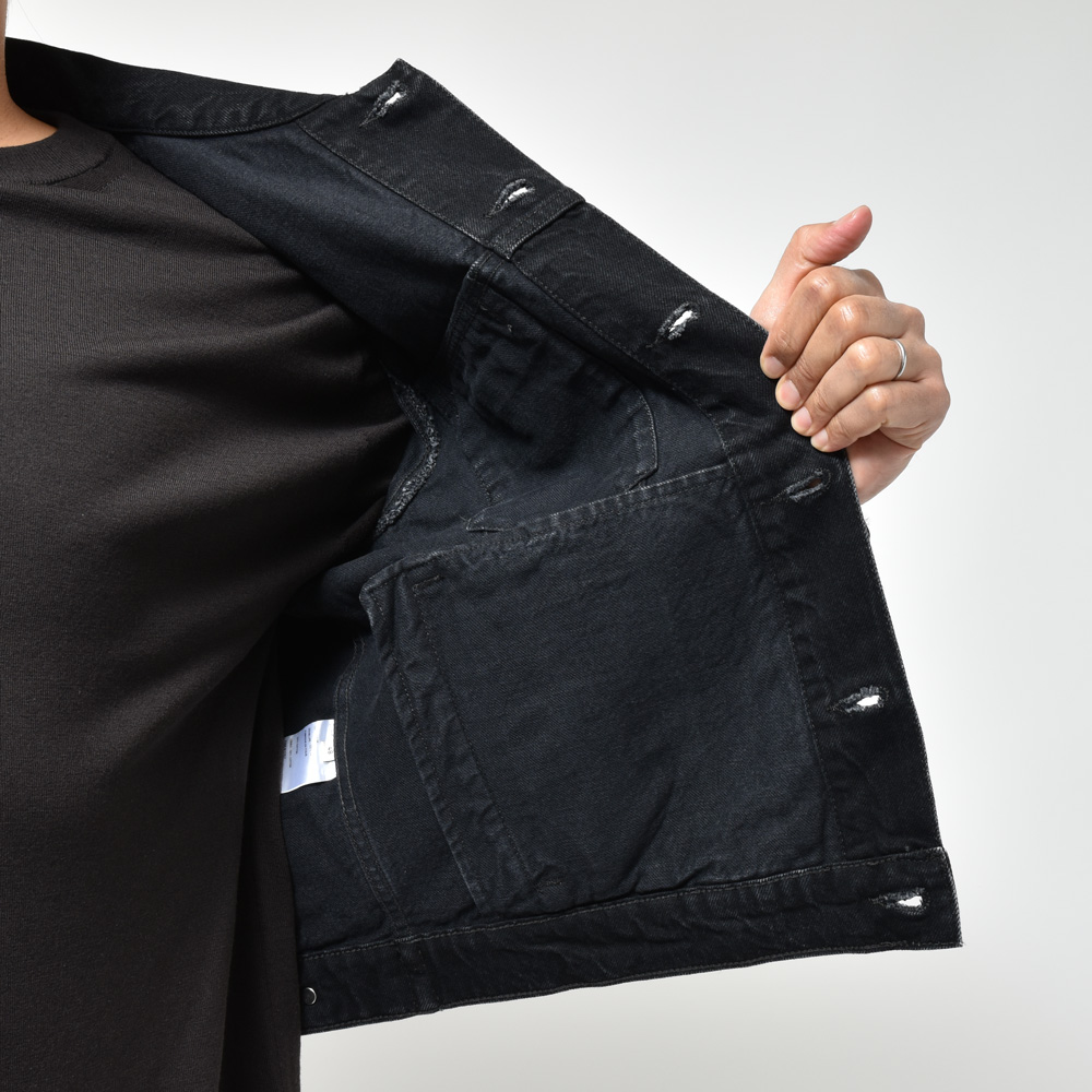 デニム特有のカジュアル感はありますがブラック故にあまり抜け感が出過ぎないのもいいところ。夏場以外は使用可能なアイテムなので汎用性も高めです。