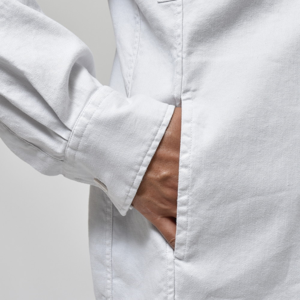 シャツとしては地厚ですが、アウターとしては軽い、そんな正にLIAMに用いられるために用意されているであろうリネンコットンファブリックはストレッチ性も備えています。