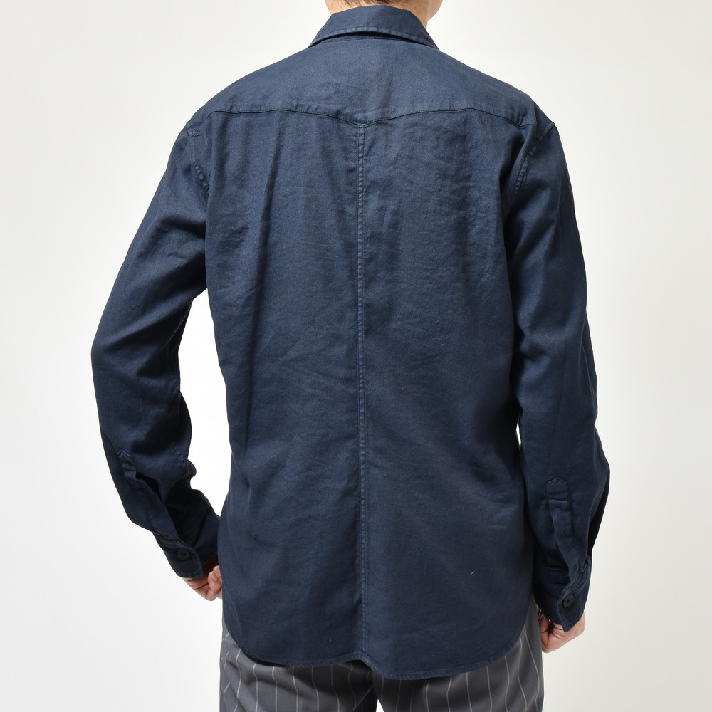 パッと見はシャツなんですが、羽織りとしても使える生地を用い、腰にもポケットを排したハイブリッドデザインが特徴。タフさを感じさせつつどこか都会的で洗練された印象を漂わせるところがBAGUTTA製の特徴ですね。