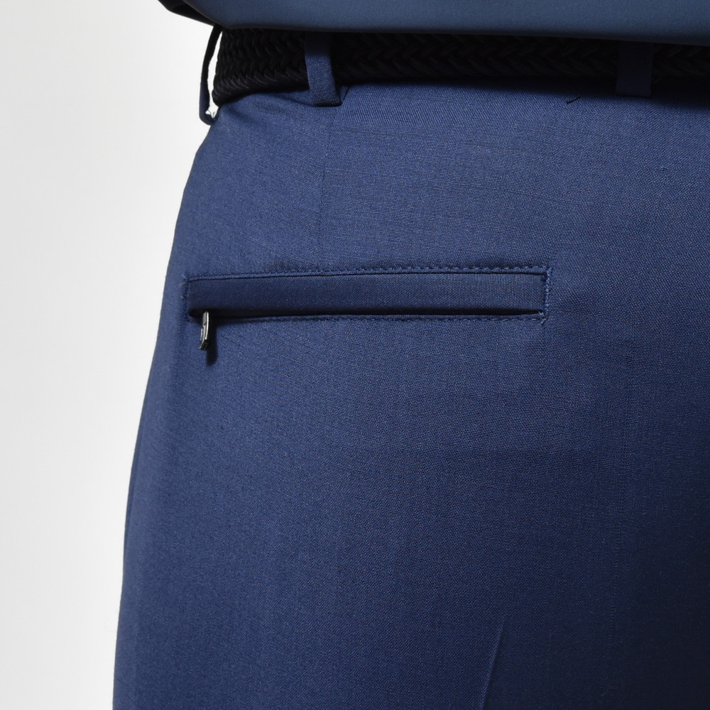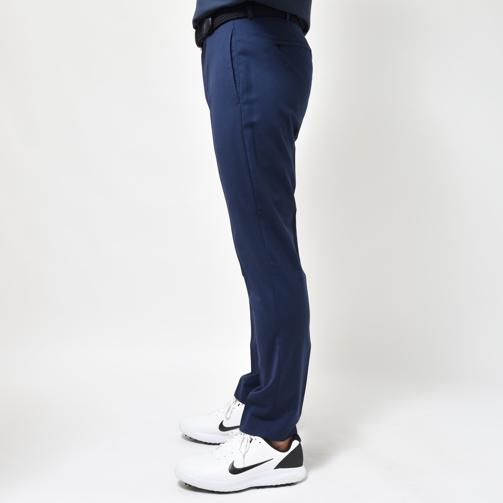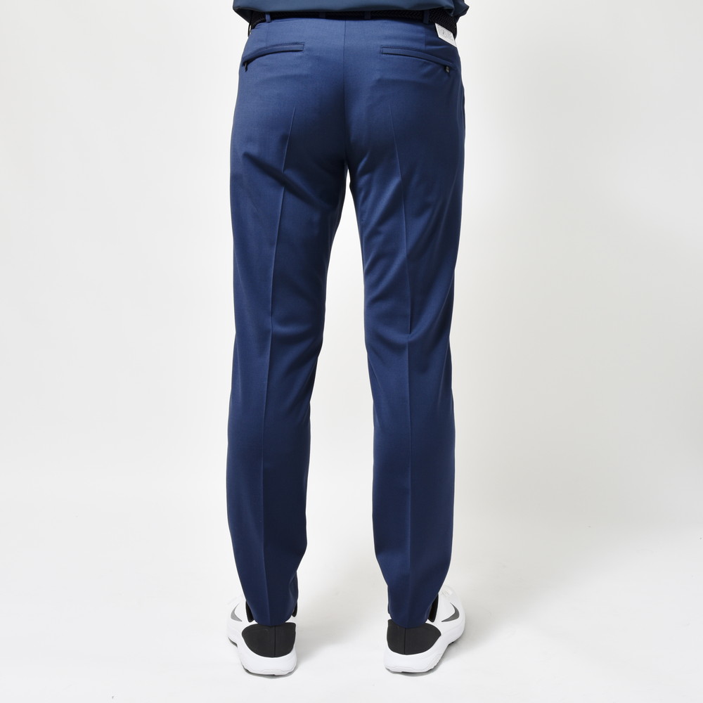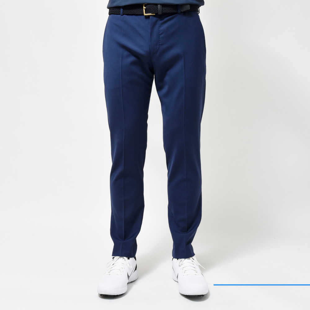 見た目は綺麗なウールパンツですが、軽く清涼感ある生地でウォッシャブルかつ程よいストレッチ性のあるゴルフでも使えるパンツです。