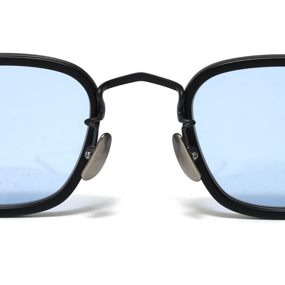 pine(パイン)のスクエアサングラス 1053SG。同ブランドでも人気の高いメタルフレームをベースにレンズ枠部分にセル輪をはめ込んだコンビネーションモデルになっています。