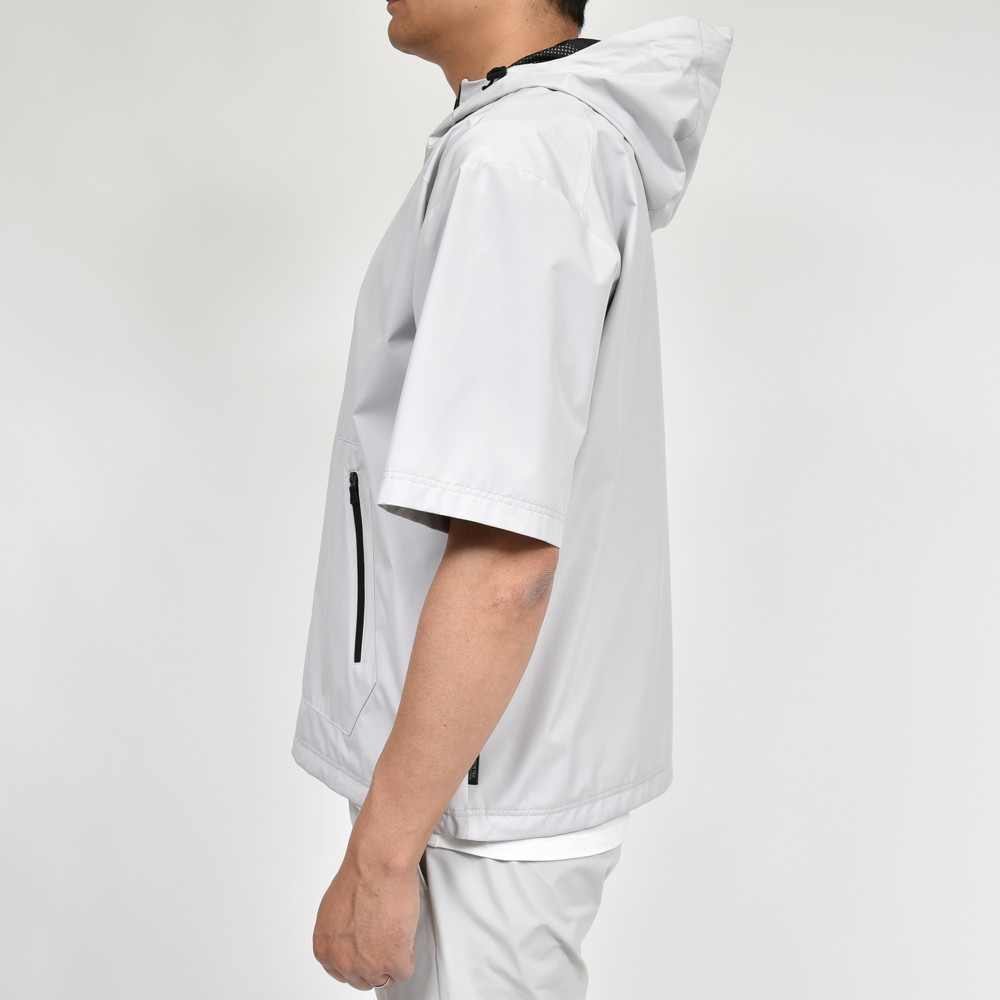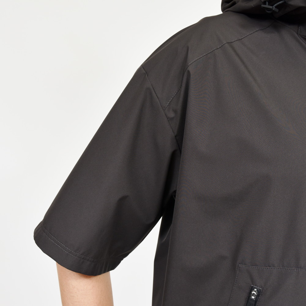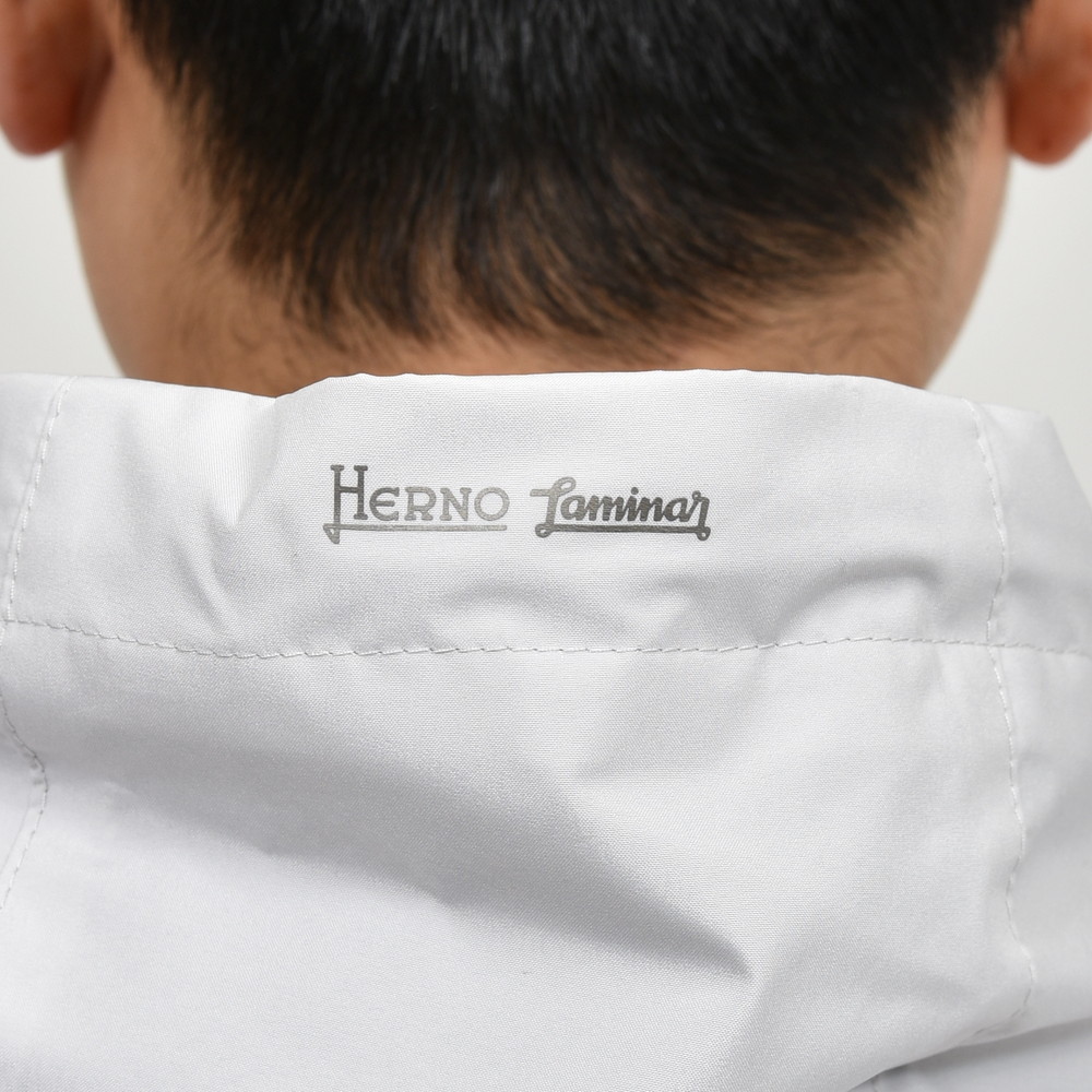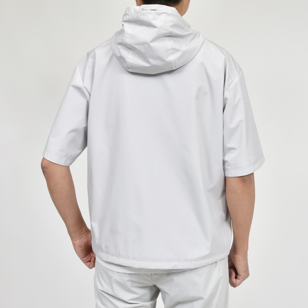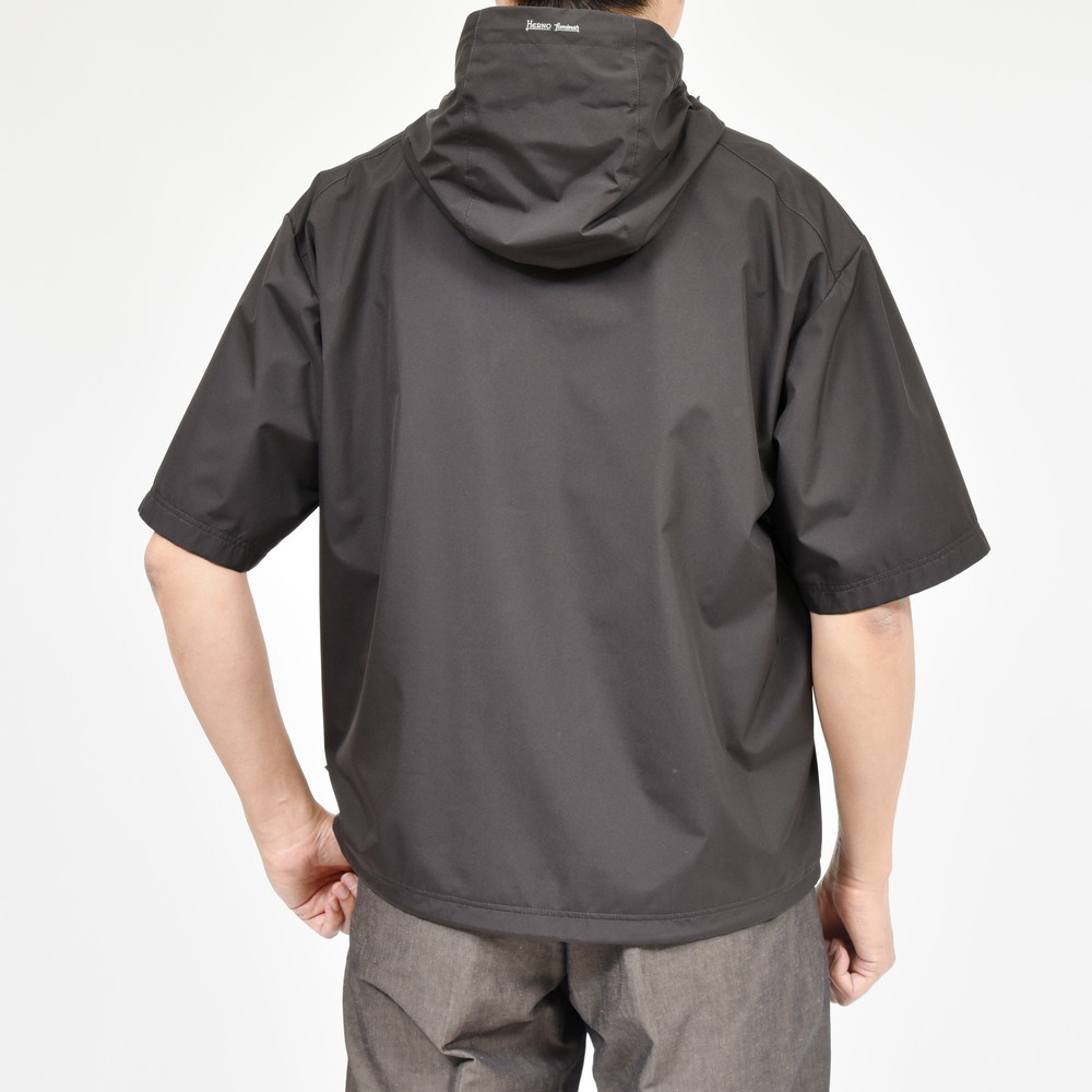 HERNO(ヘルノ)Laminarラミナーでは定番素材となる2レイヤー仕様のGORE-TEX INFINIUM、こちらは少し珍しいデザインである半袖タイプのアノラックフーディーです。
