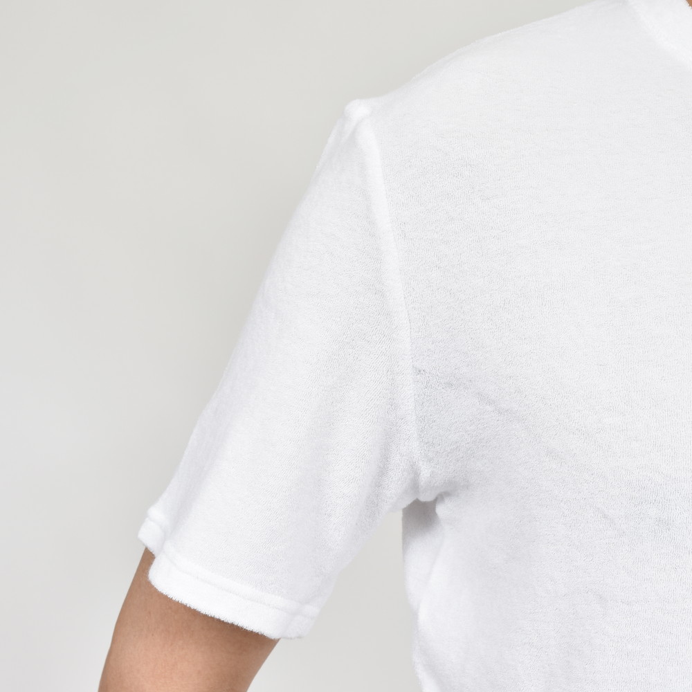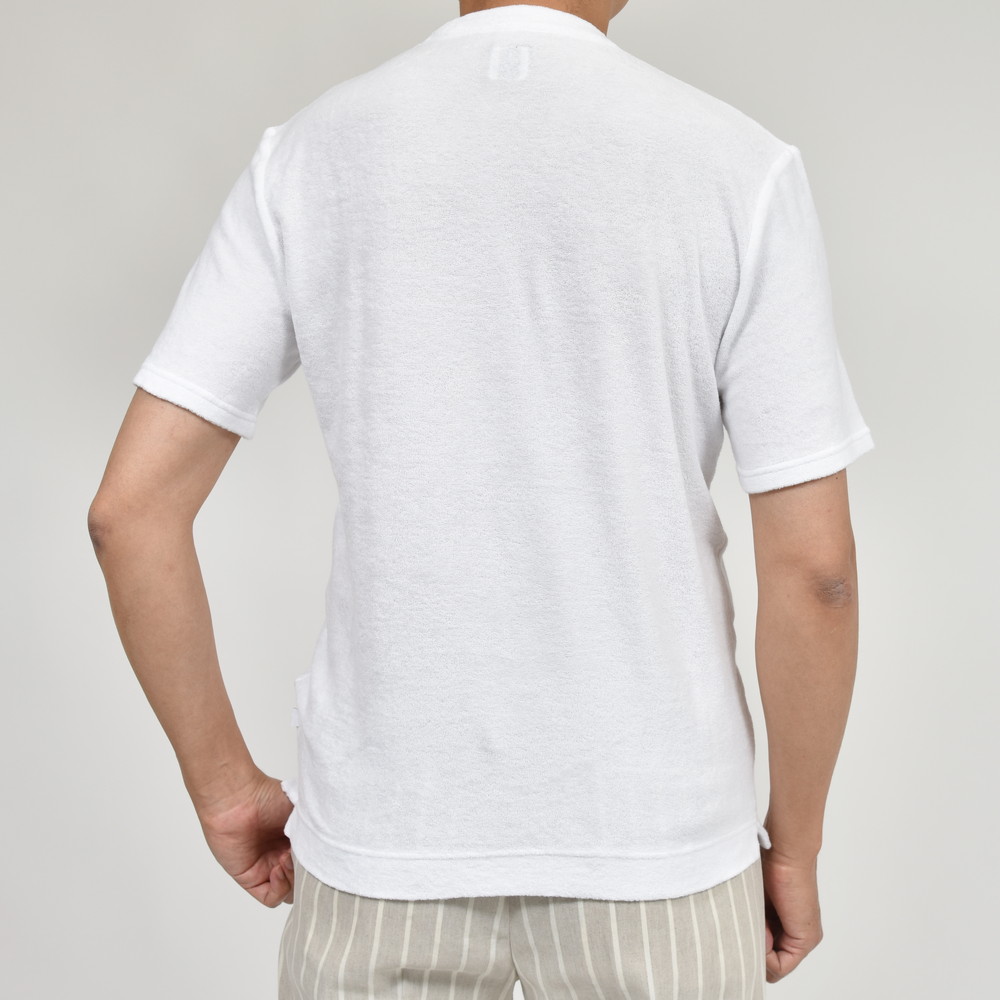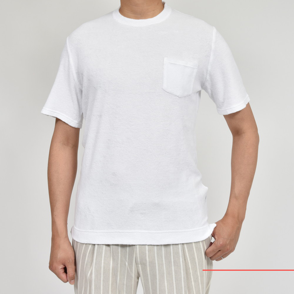 所謂ベーシックなTシャツよりもリラックス感が前に出るパイル生地ですが、FEDELI謹製のものになるとラグジュアリーな雰囲気が付加されるように思います。